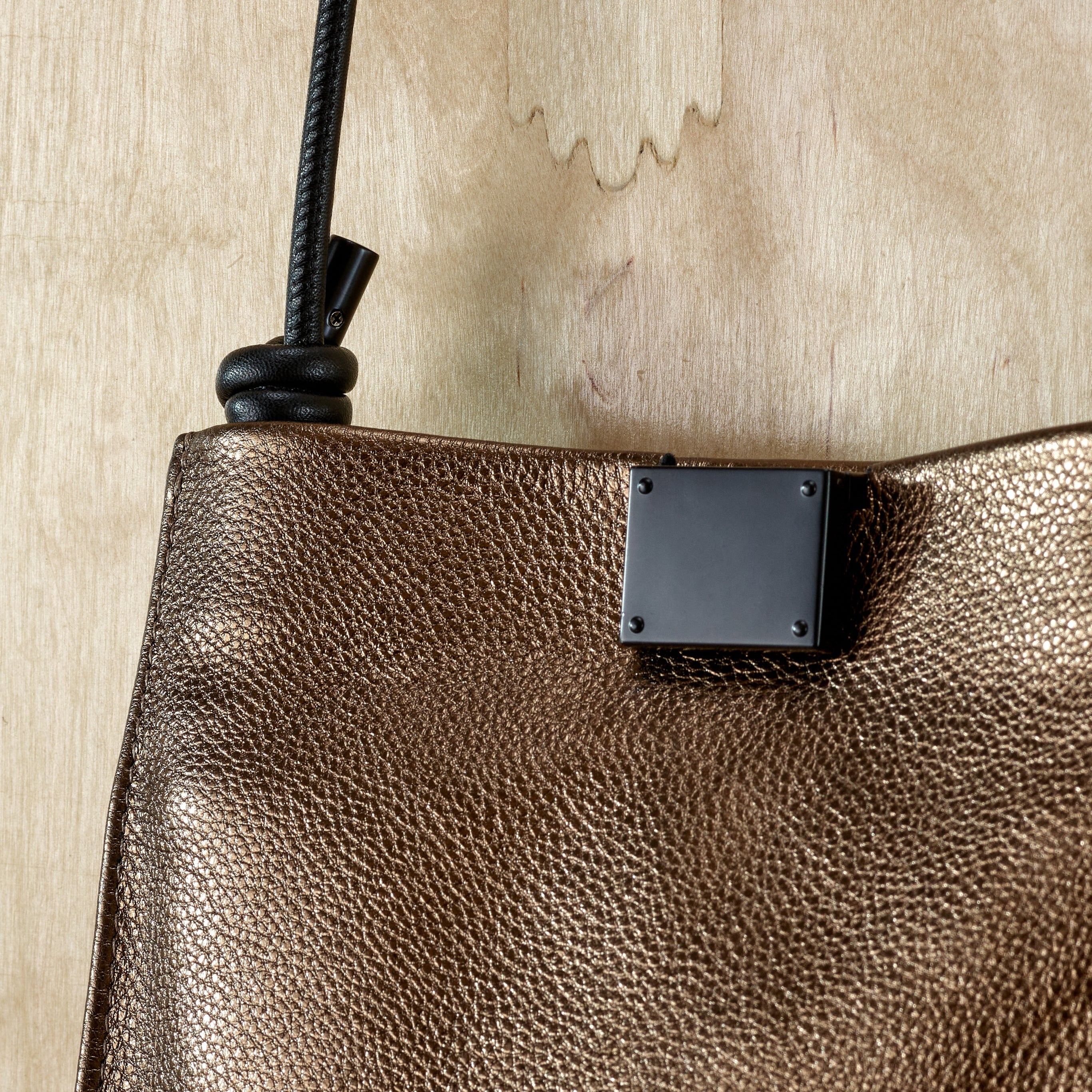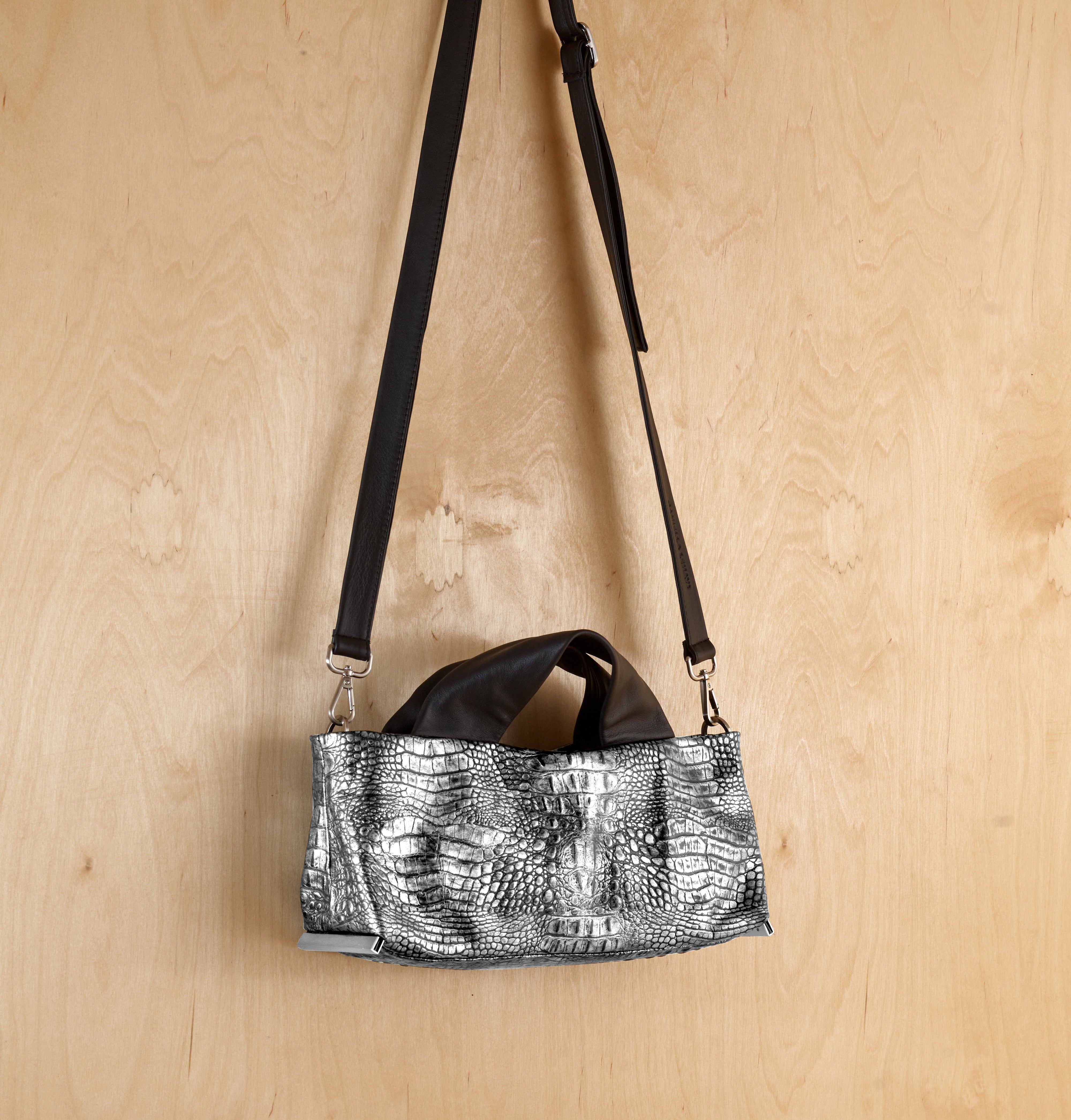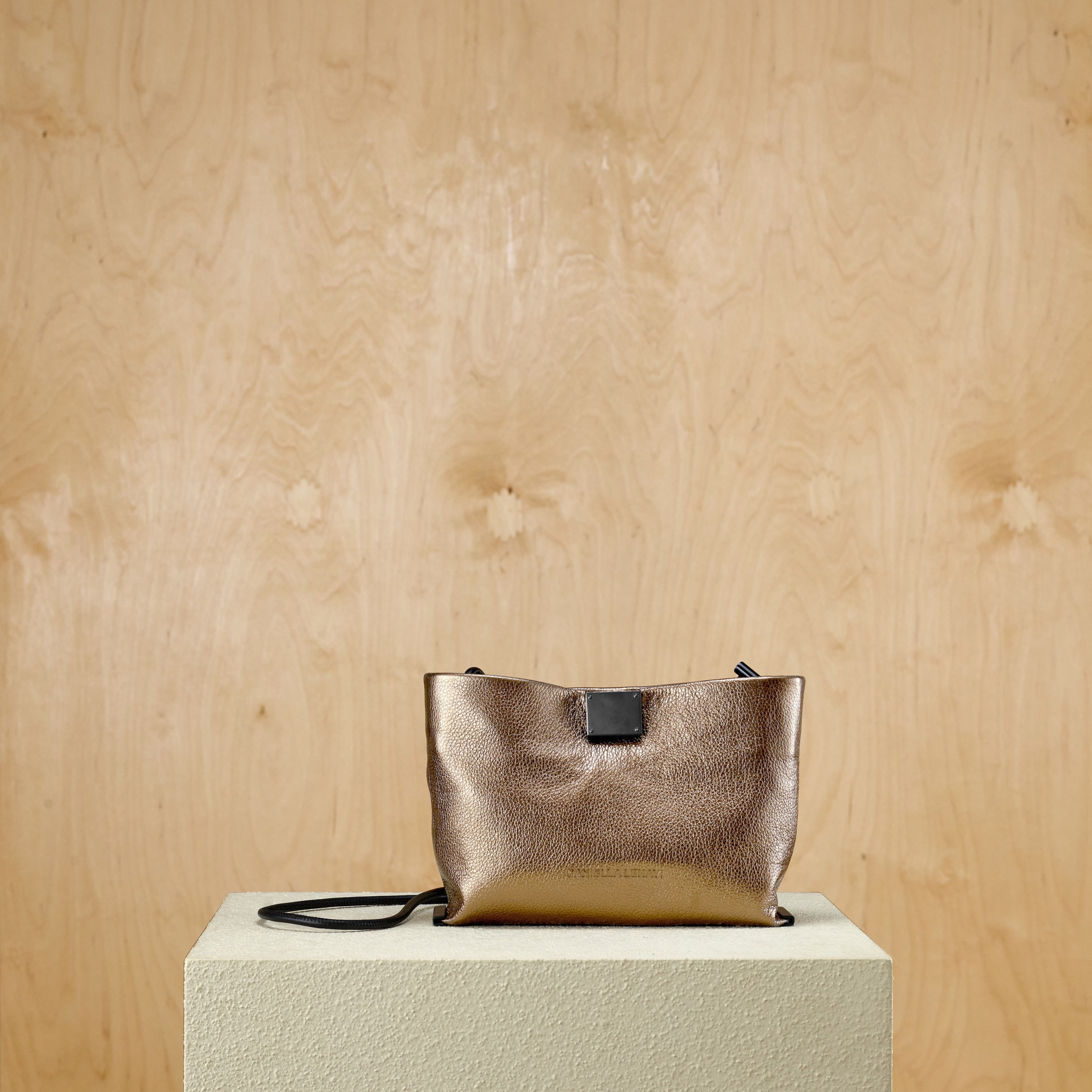 A small evening bag that brings a clean, industrial approach-perfect for anyone who prefers minimalism without excessive shine.