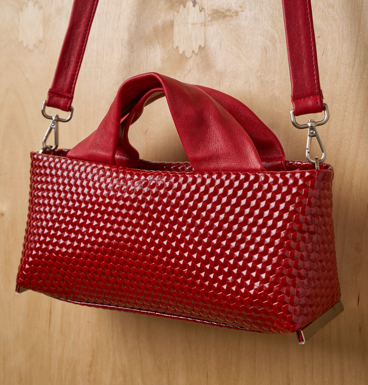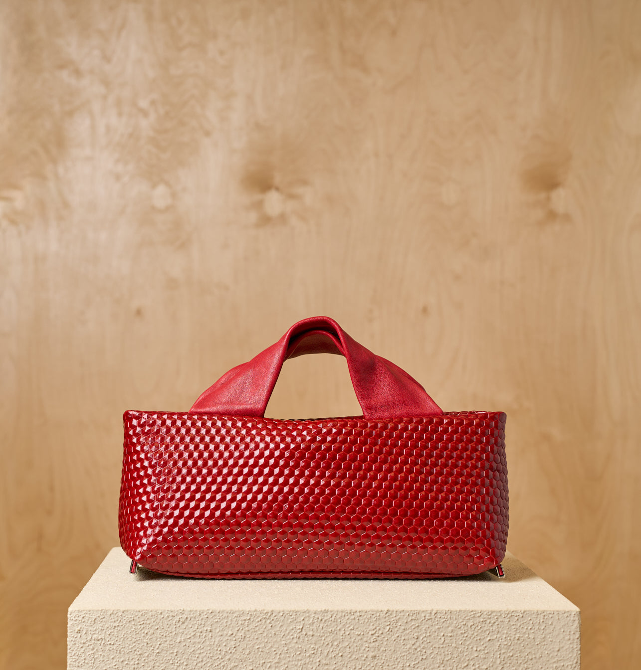 A rectangular shaped bag with precise proportions and an elegant look. The adjustable shoulder strap and top handles offer flexibility for carrying by hand or over the shoulder. A simple yet striking design that blends precision, softness, and femininity.