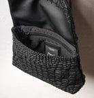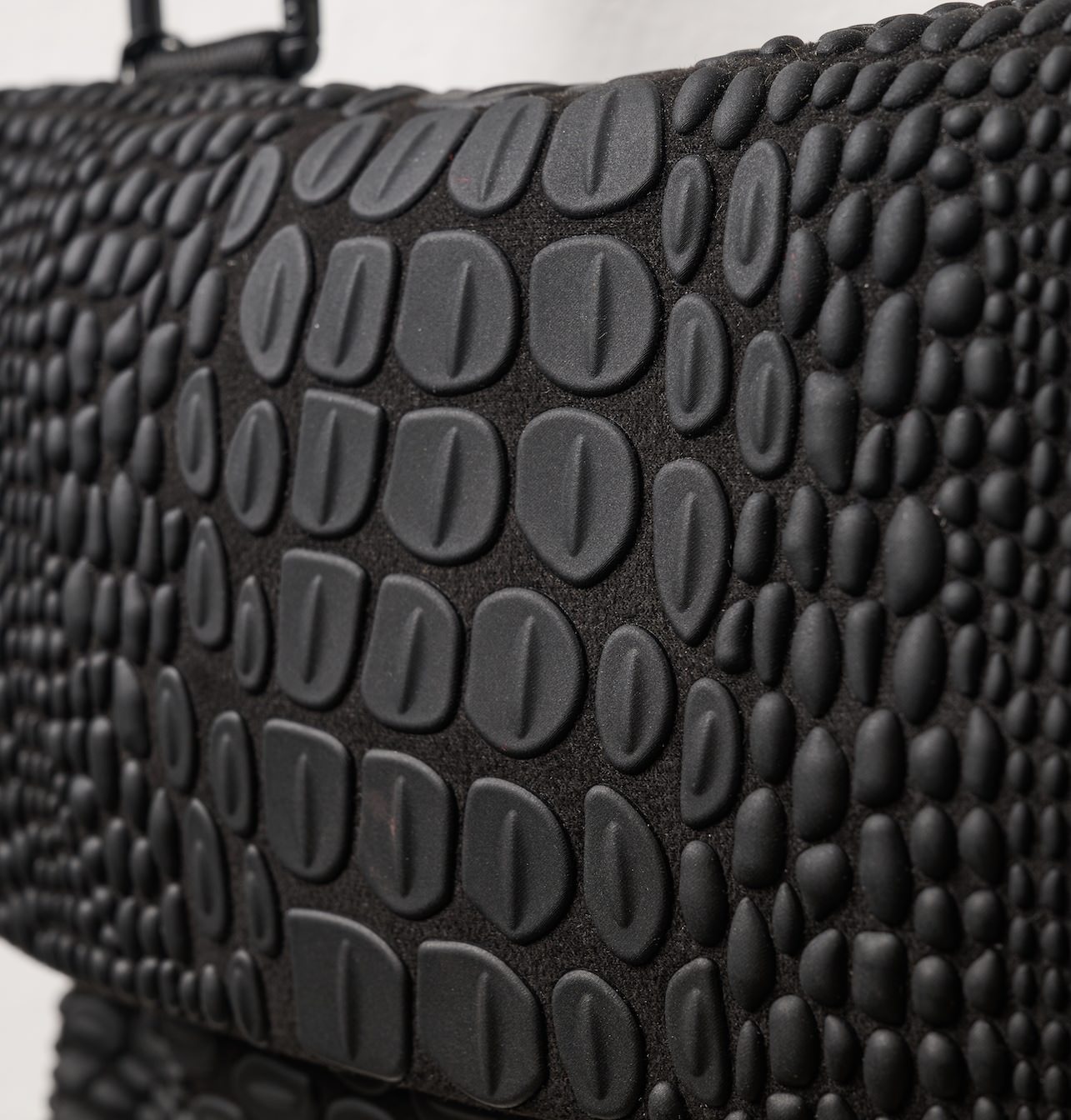 The Tokyo Clutch is made of a unique recycled material that is lightweight and washable. It can be held as a clutch, or it can be worn as a crossbody with a new adjustable crossbody strap that features a removable sculptural plastic chain element, adding an extra touch of detail and elevating the bag's versatility and style.