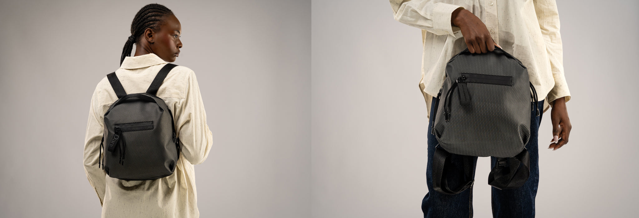 We call it Circular Design, although we prefer the term Circular Beauty. Our vegan bags are crafted from recyclable plastic bottles - a renewable material that can be reused and recycled in the future. They require less water and energy, and they become even more stunning with each use.