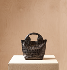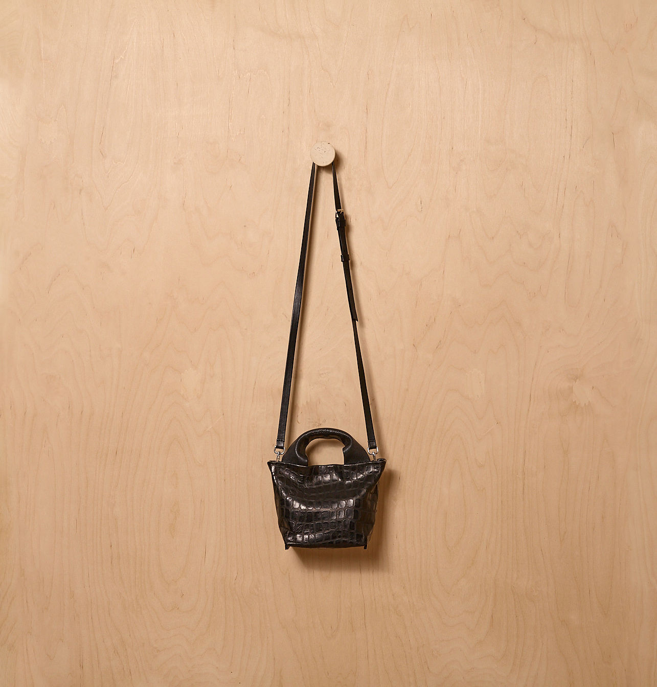 The leather’s texture was developed as a contemporary interpretation of one of Daniella’s most iconic archive leathers, first introduced two decades ago – a creative variation on croco, embossed on soft Italian sheepskin with a geometric pattern, wax finish, and the distinct individuality of handcrafted leather.