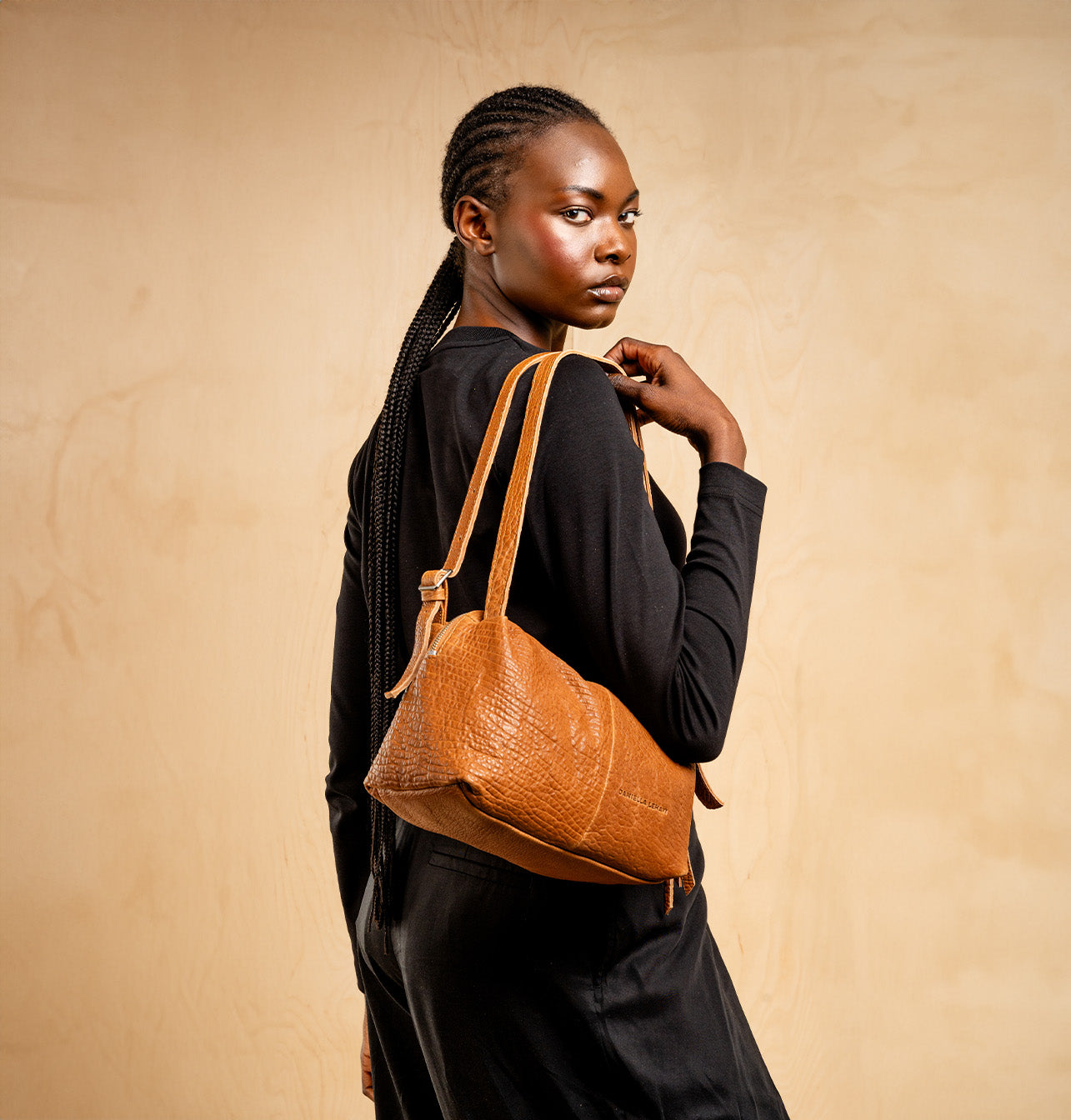 Its soft leather body sits comfortably against the side, while the wide zippered opening gives quick access to everything inside. Despite its smaller size, the tote includes smart interior organization to keep your items secure and within reach.