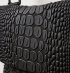 Tokyo Clutch A bag with a clean silhouette and a croc texture developed in our studio, creating a precise balance between softness and defined character. The folded magnetic closure together with the chain detail adds a modern, refined look.