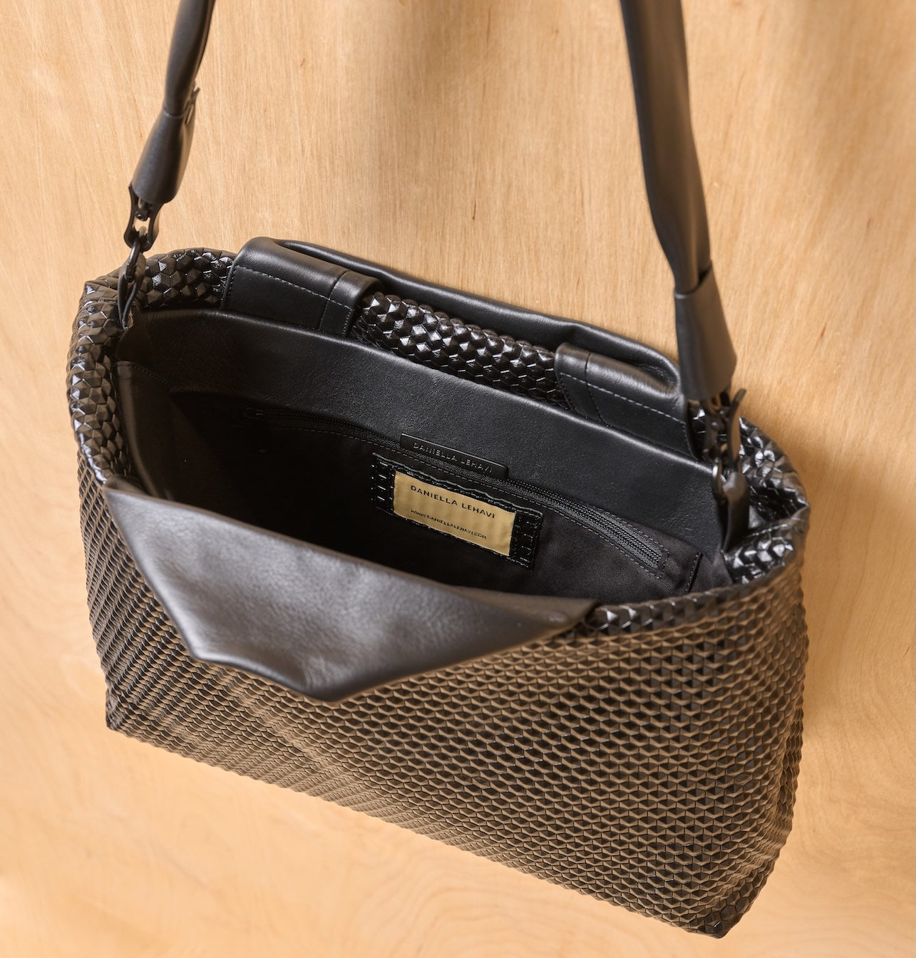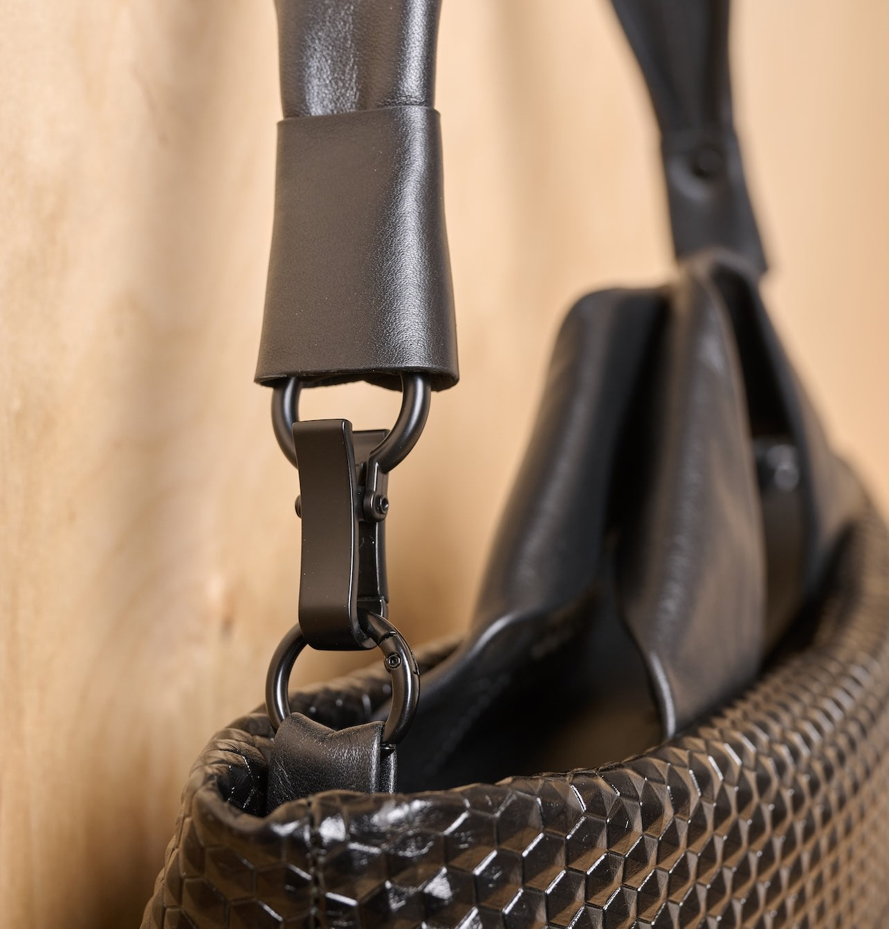 A bag with clean lines and a natural softness in both movement and touch. Its organized interior layout and generous volume ensure order and practicality for everyday use. The top handles and fixed shoulder strap offer comfortable carrying, in a design that balances quiet strength with feminine elegance.