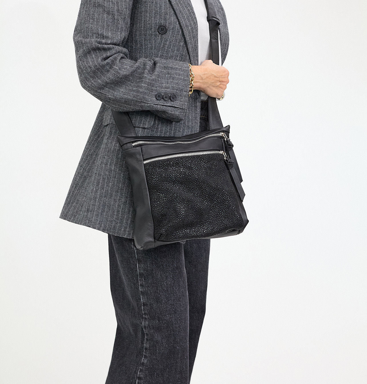 Our Alma collection celebrates the timeless artistry of handmade Italian leather. The bag is square-shaped with two front zip pockets and an adjustable shoulder strap. Whether worn crossbody or over the shoulder, this bag is designed for those who appreciate craftsmanship.