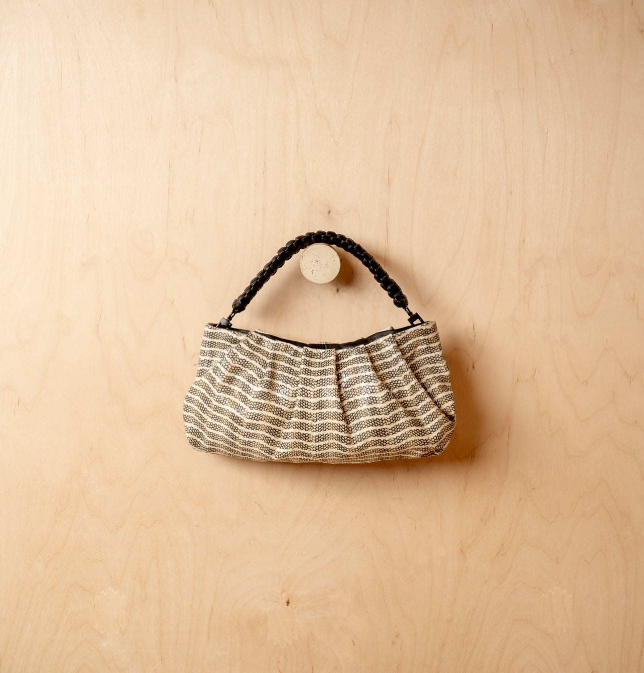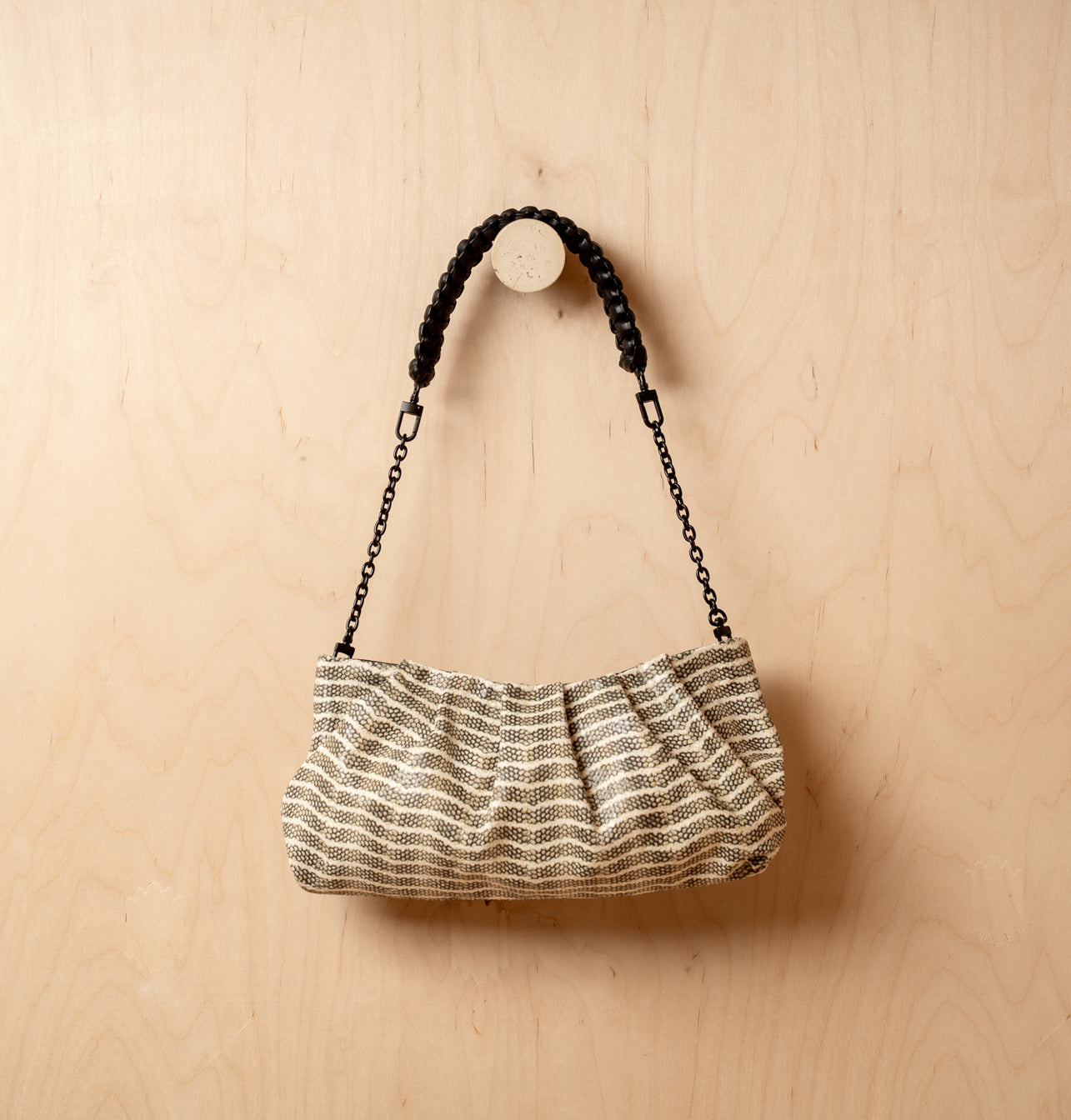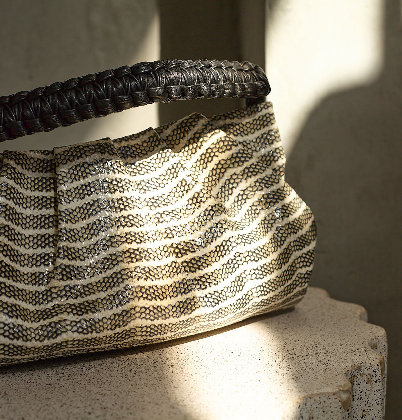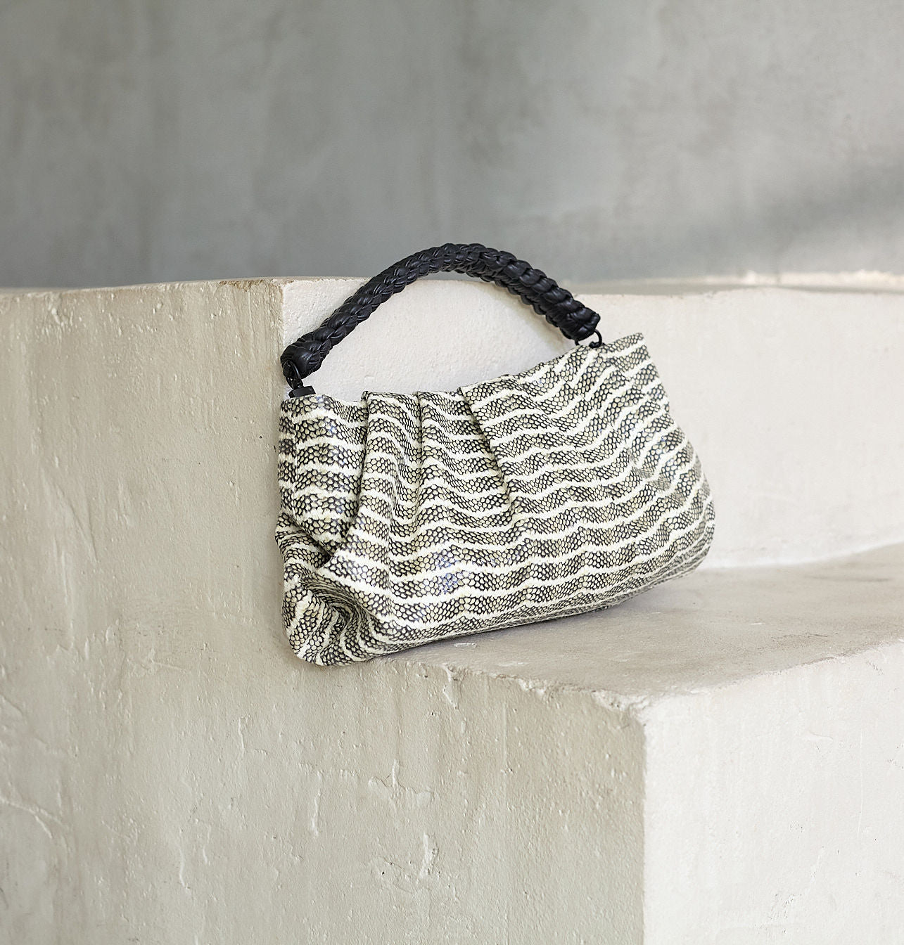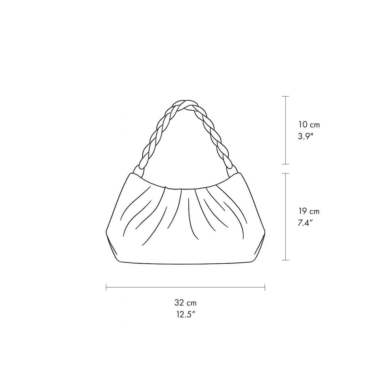 Bali Braided Landscape Bag features a refined, elongated silhouette, with clean lines and soft leather pleats that create a sense of movement and volume. The braided shoulder strap adds a handcrafted textural element – like a jewelry detail that illuminates the entire look.