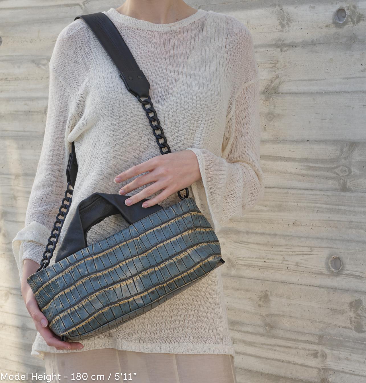 Alexa Landscape is a rectangular bag with precise proportions and an elegant look. A shoulder strap and top handles allow for flexibility between hand and shoulder carry. It features a simple yet present design that combines precision and softness.