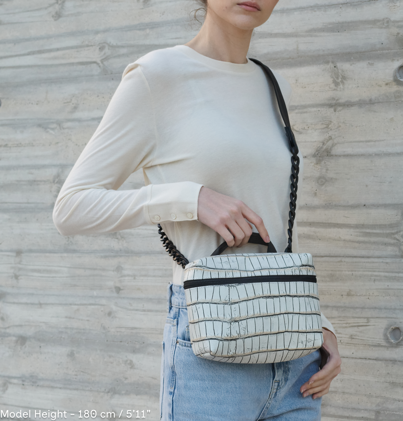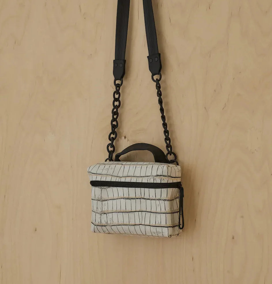The Chicago Box is a bag with a boxy structure, precise proportions, and clean lines. Its defined shape maintains a refined look, while the leather and texture add depth and subtle movement. The clean, precise design has a quiet presence that remains timelessly relevant.