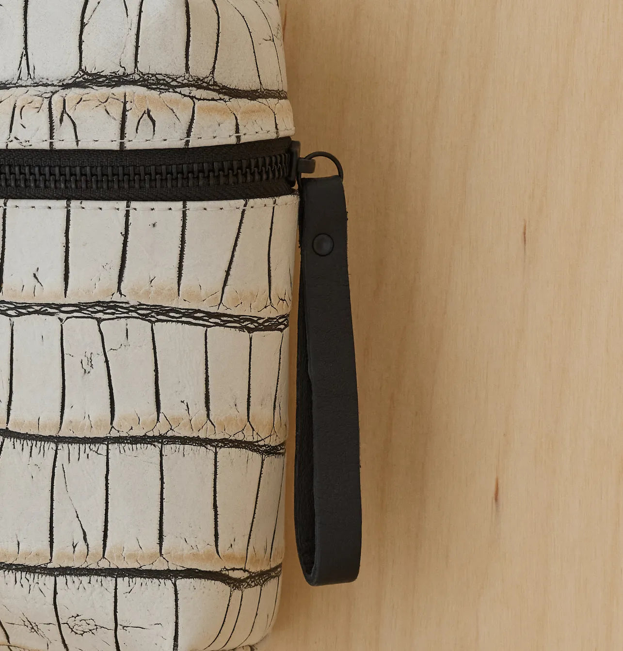 • Internal keychain holder with a leather strap