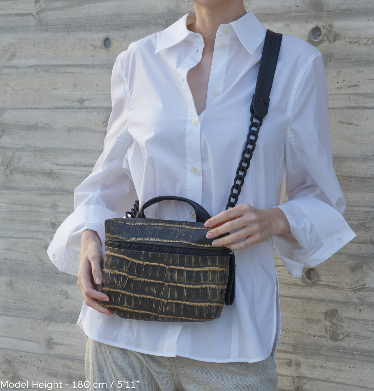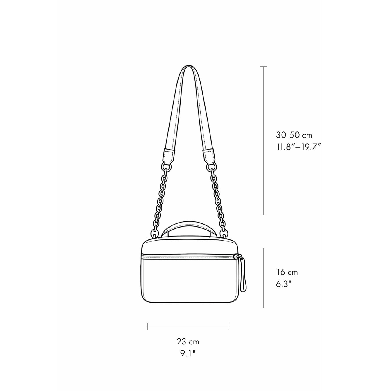 The Chicago Box is a bag with a boxy structure, precise proportions, and clean lines. Its defined shape maintains a refined look, while the leather and texture add depth and subtle movement. The clean, precise design has a quiet presence that remains timelessly relevant.