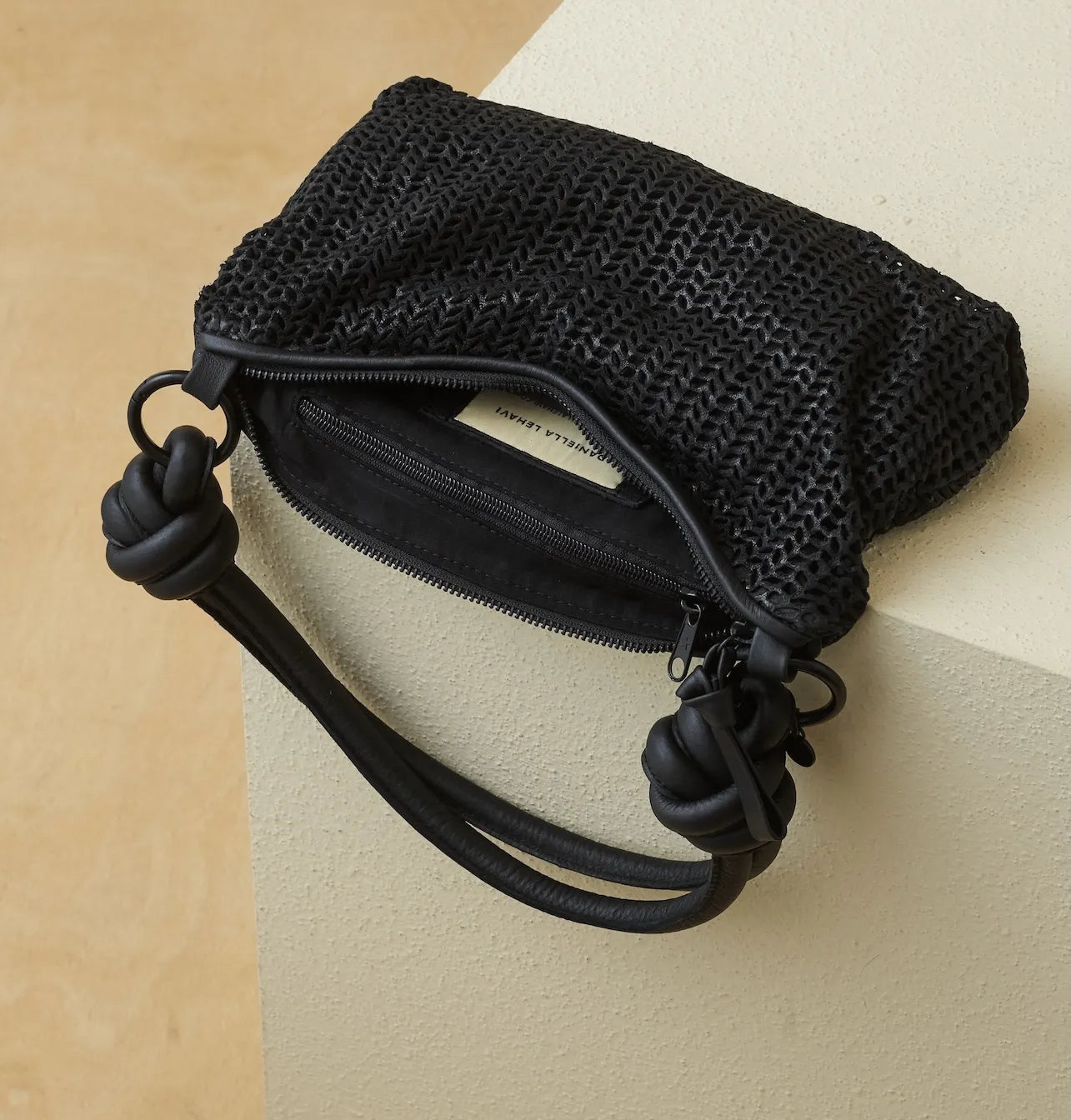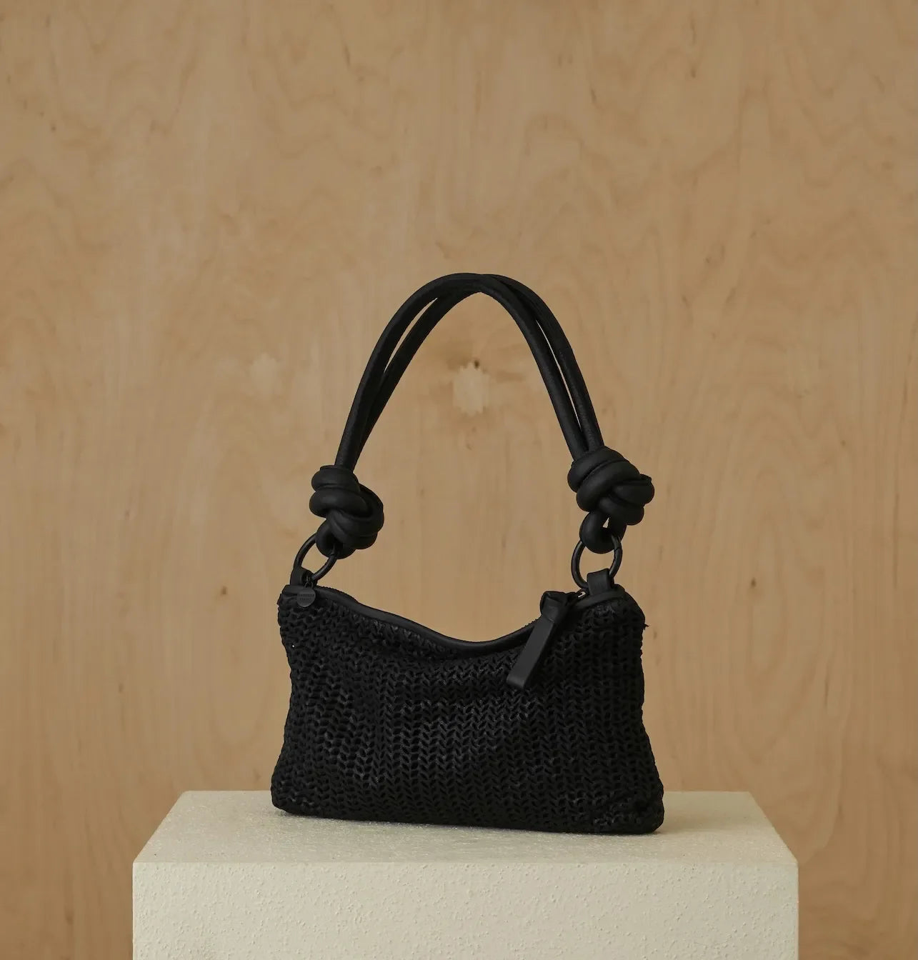 The bag comes with two detachable straps: a short shoulder strap featuring a knotted design element, and a long adjustable strap – allowing you to choose how to carry it, on the shoulder or crossbody.