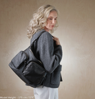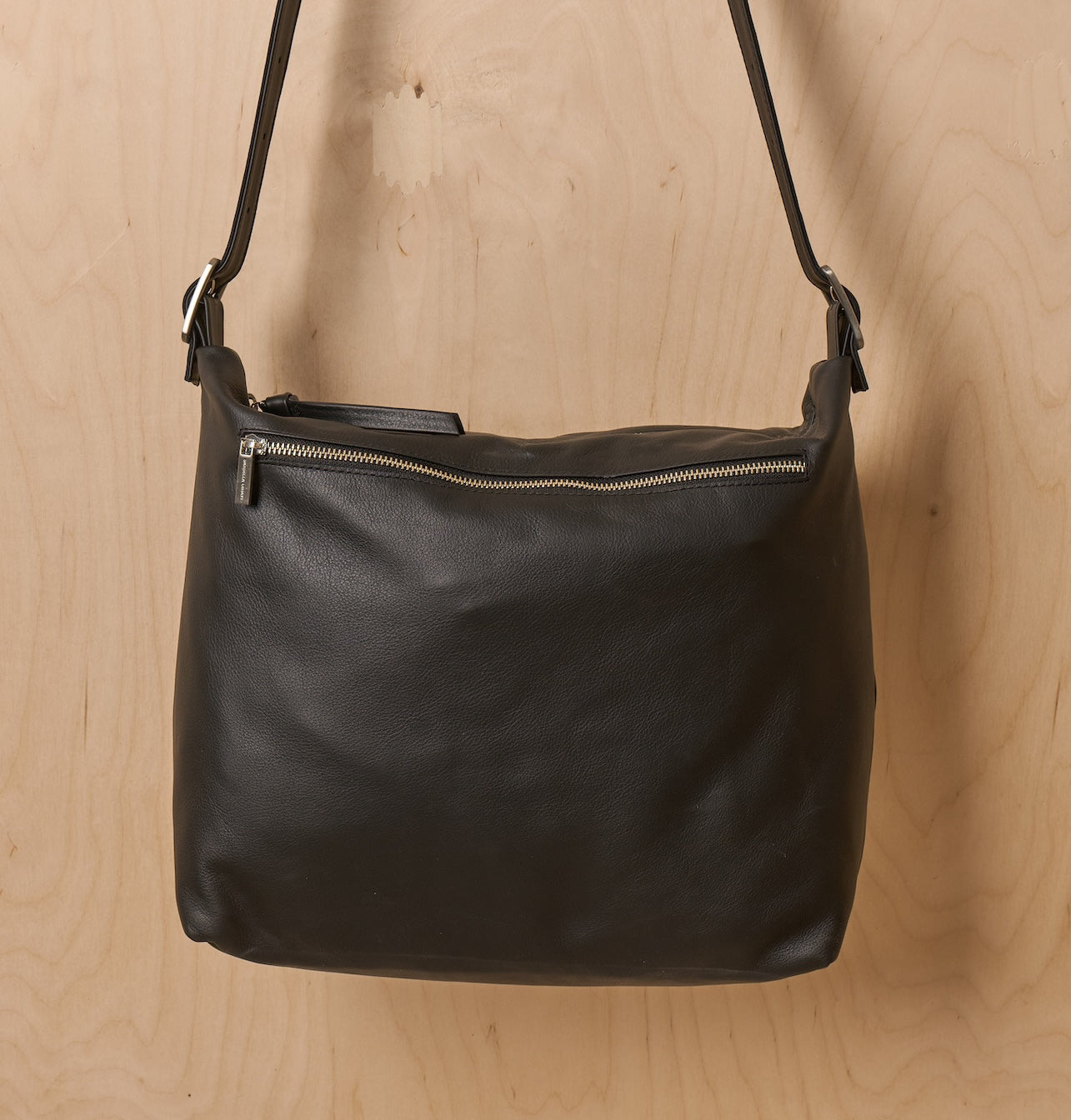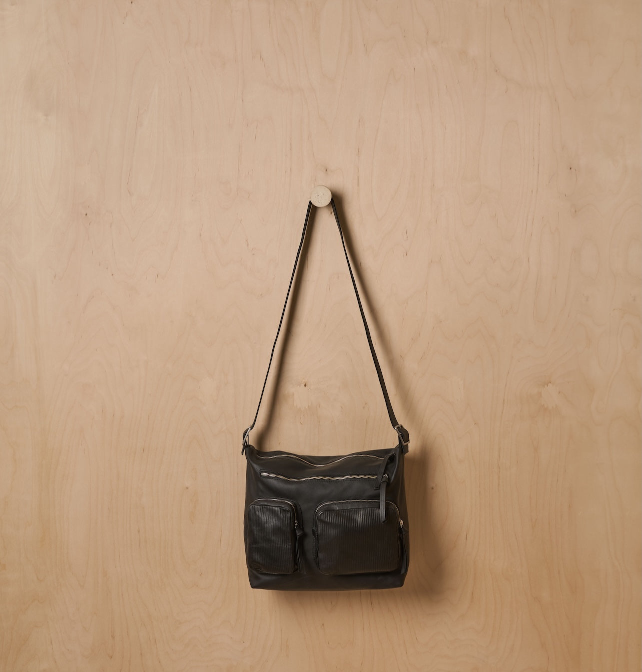 The generous shape and thoughtfully designed compartments allow for easy organization and everyday practicality. External zippers and pockets add both visual depth and material richness, turning functionality itself into a defining design element. With its wide strap and supple leather body, this bag feels light and comfortable – a perfect companion for daily use.