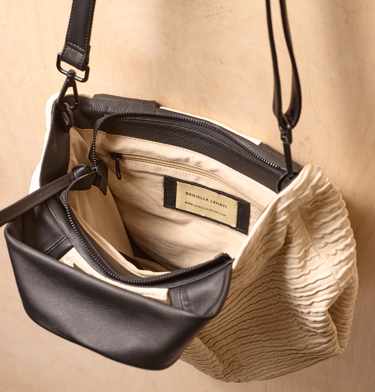 The Bali Satchel Wavy is designed to redefine movement, depth, and texture. Its precisely crafted folds create a distinctive wave effect that catches the eye and adds a sense of fluidity and dynamism. Beyond its striking design, the bag features a thoughtfully organized interior and an adjustable shoulder strap, allowing you to wear it comfortably over the shoulder or carry it by hand with the soft leather handle.