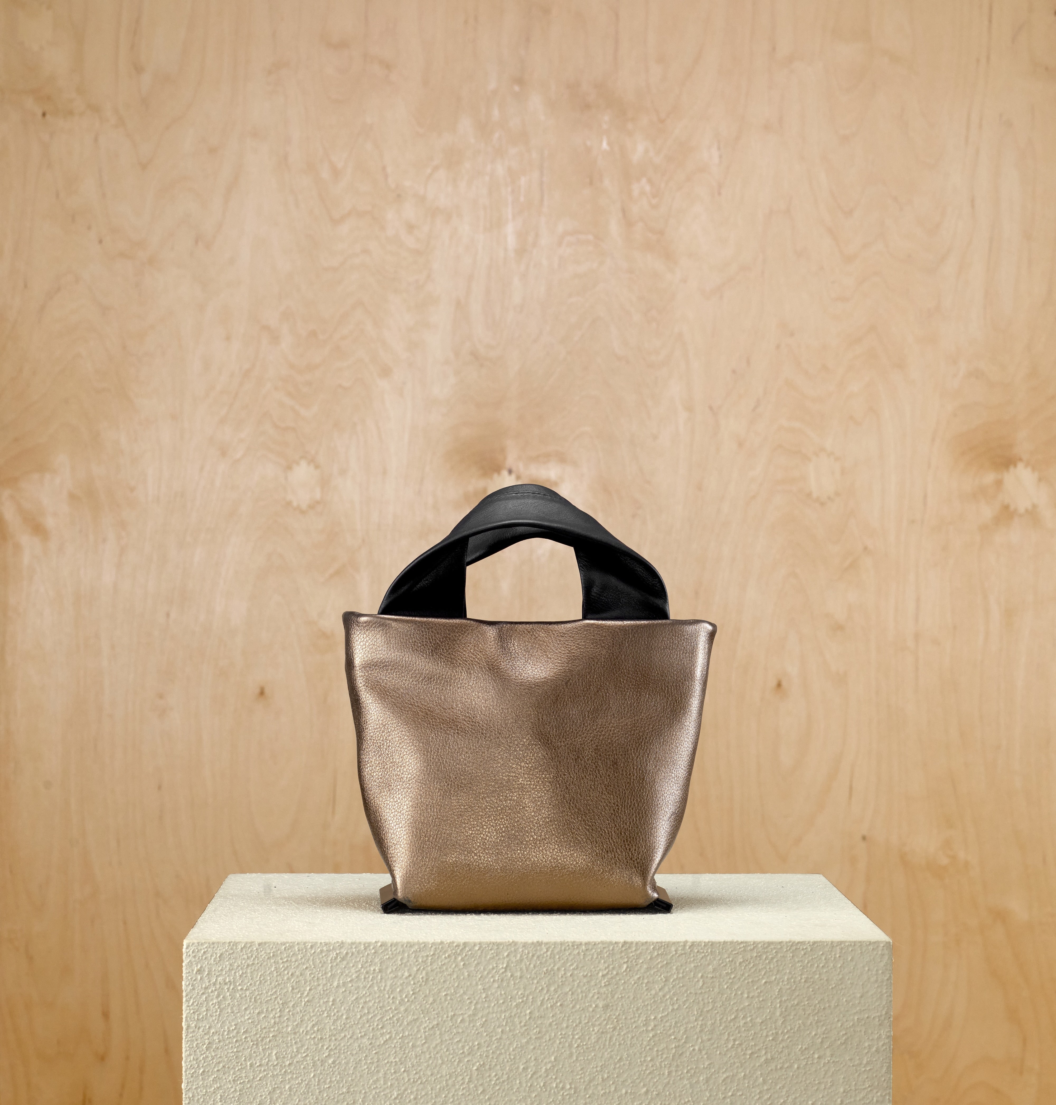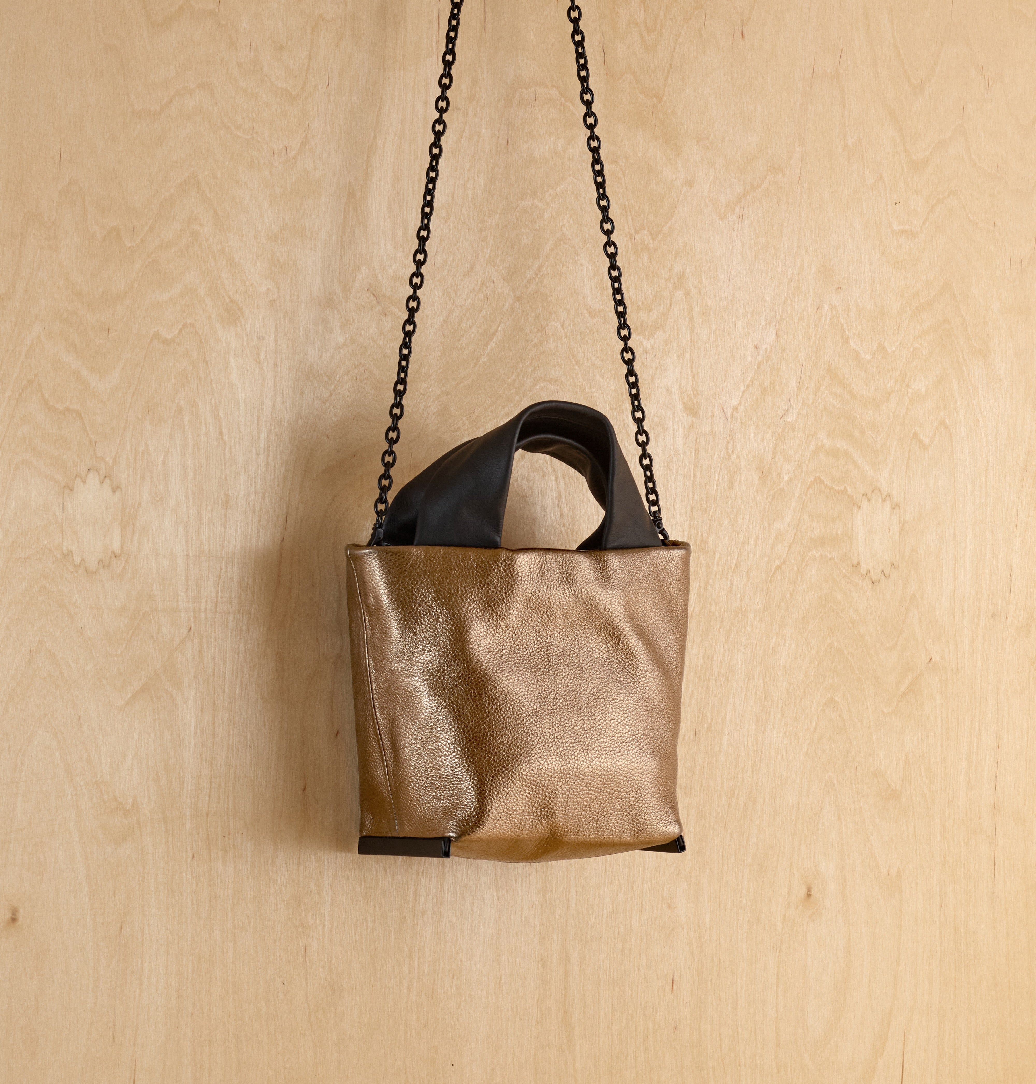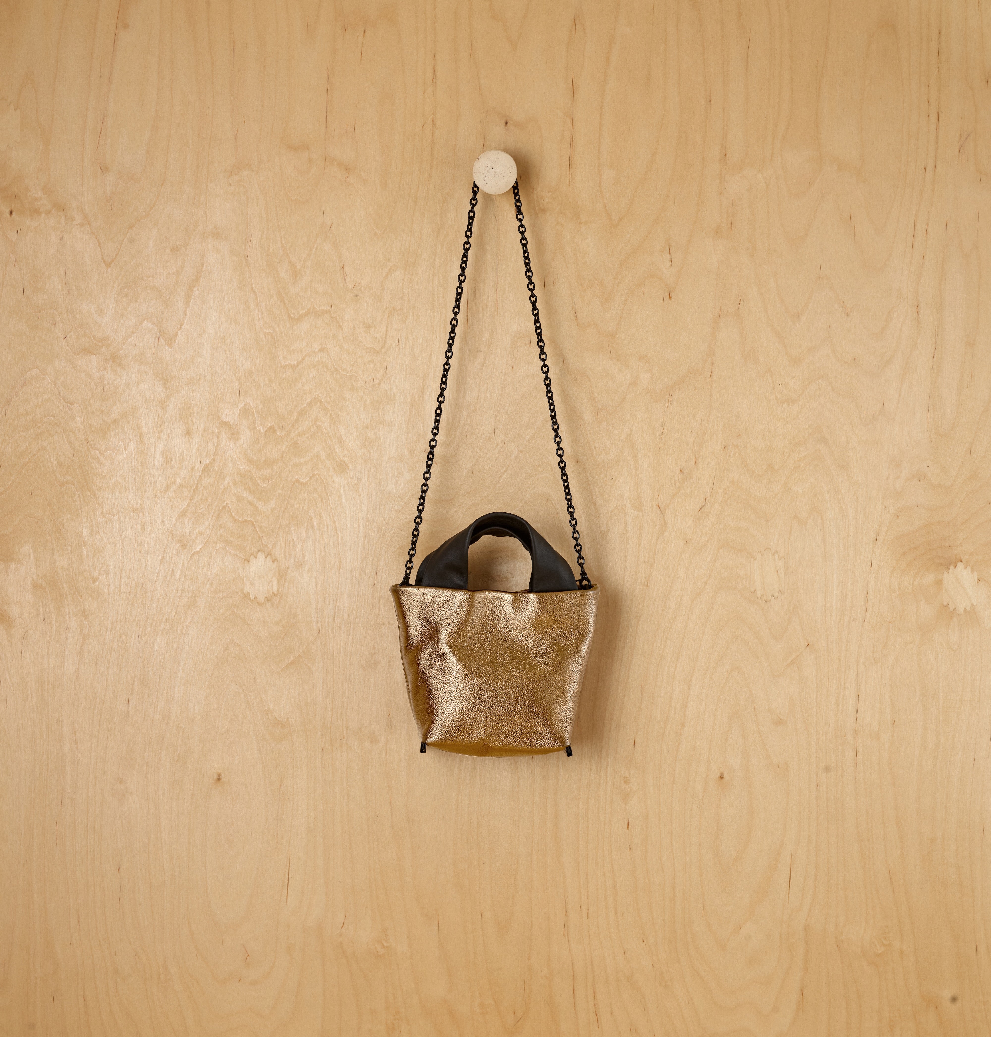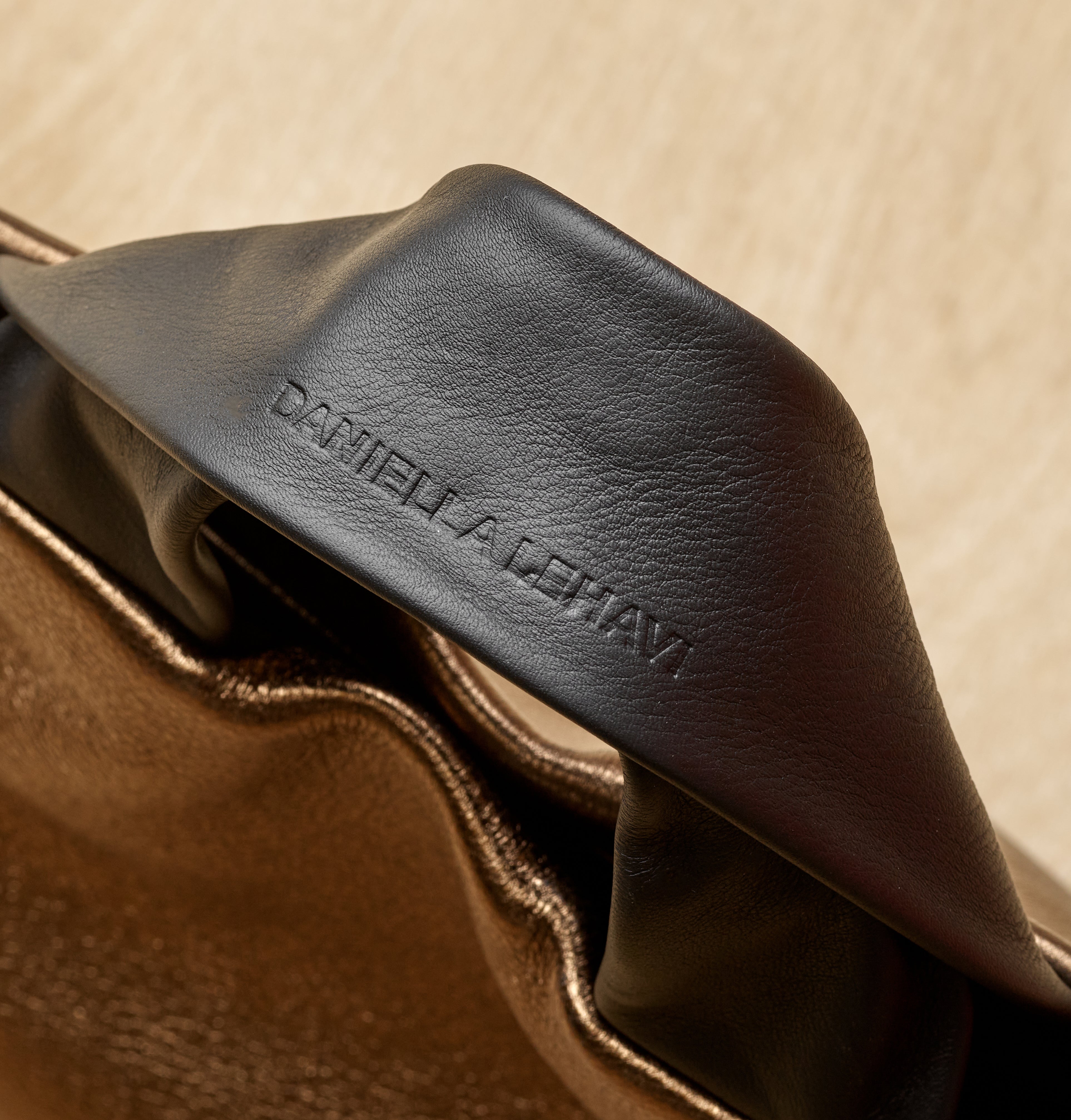 A bag built around a soft shape that maintains a clean, precise silhouette. The handles offer a natural, relaxed grip, while our signature metal feet add a subtle industrial touch that highlights the meeting point between softness and strength. It carries an elegance and presence that feels understated yet clear. A quiet classic. The slim chain allows for crossbody wear, while the handles offer a closer carry option both emphasizing its ability to transition effortlessly into a refined evening look.