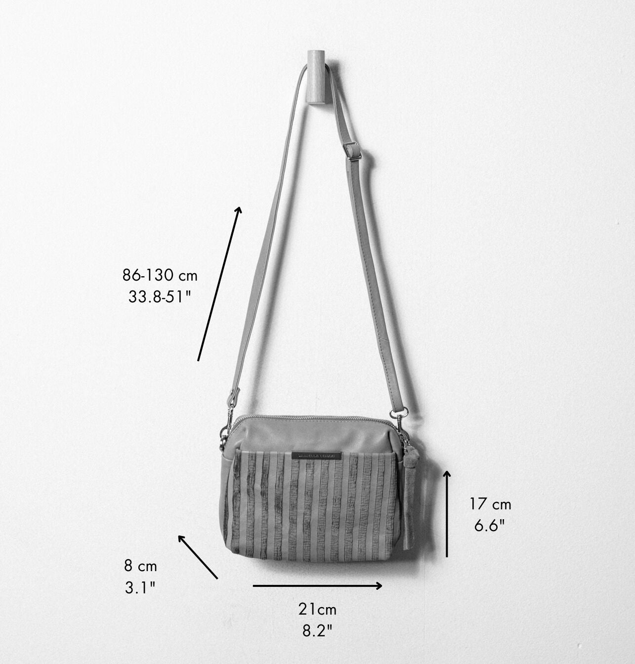 - Size: Height: 17cm (6.6"), Width: 21 cm (8.2"), Depth: 8cm (3") Strap length: 86-130 cm (51"-34")