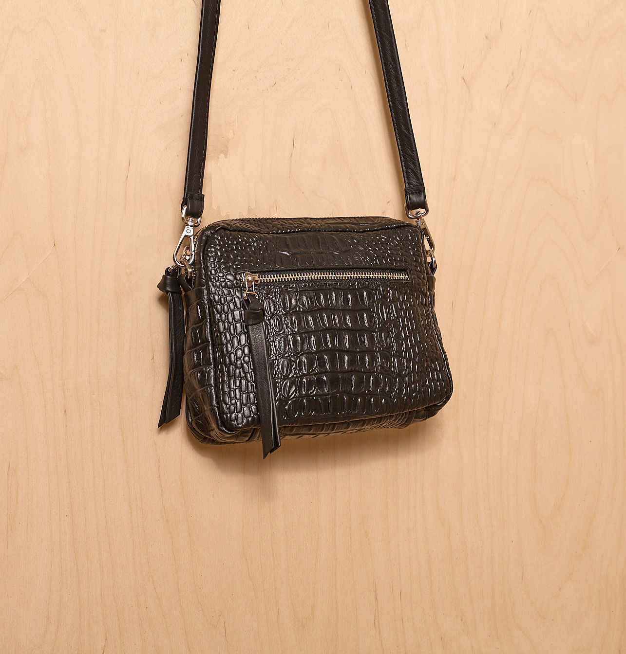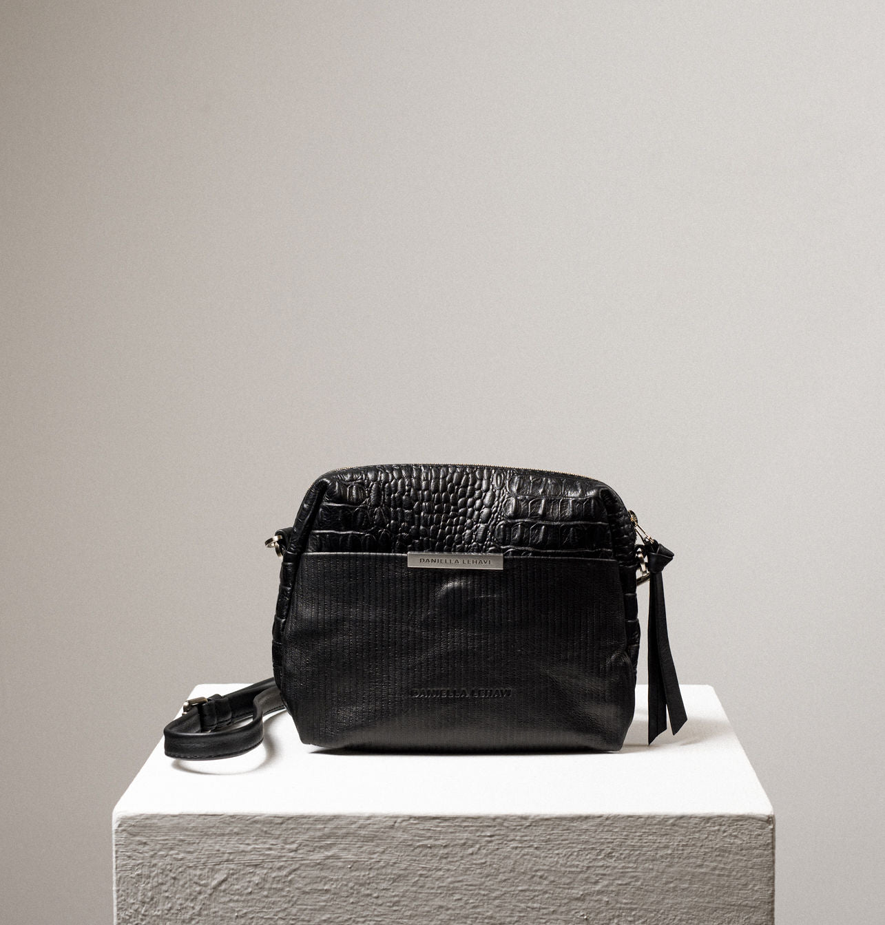 Our Alma collection celebrates the timeless artistry of handmade Italian leather. The bag is square-shaped with two front zip pockets and an adjustable shoulder strap. Whether worn crossbody or over the shoulder, this bag is designed for those who appreciate craftsmanship.
