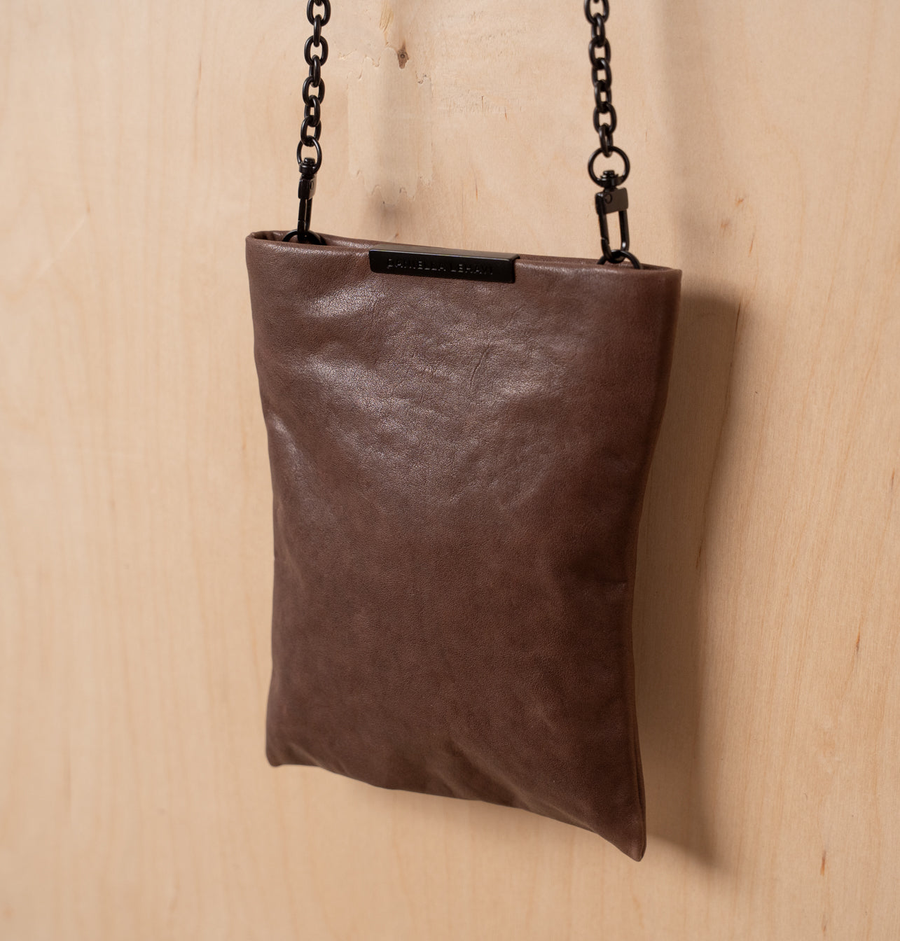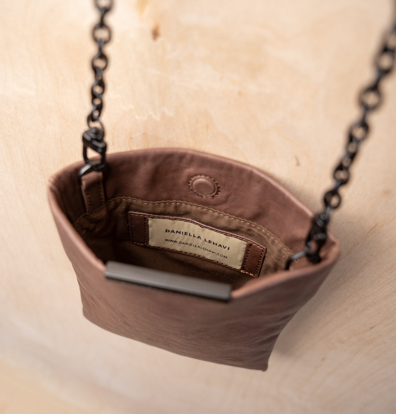 Ariella Mini Bag A small bag with a clean, precise design, featuring a leather strap interlaced with a chain for a sophisticated touch. The magnetic closure ensures easy use, while the refined structure gives it a polished and elegant look.