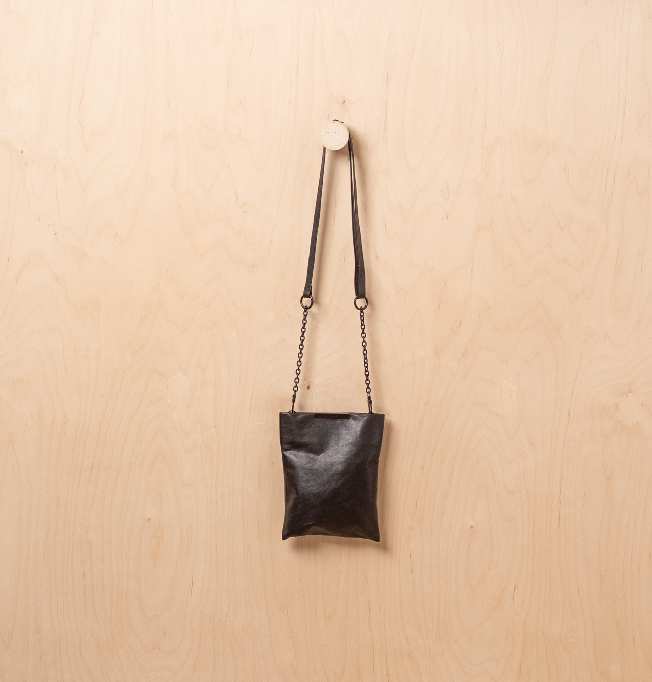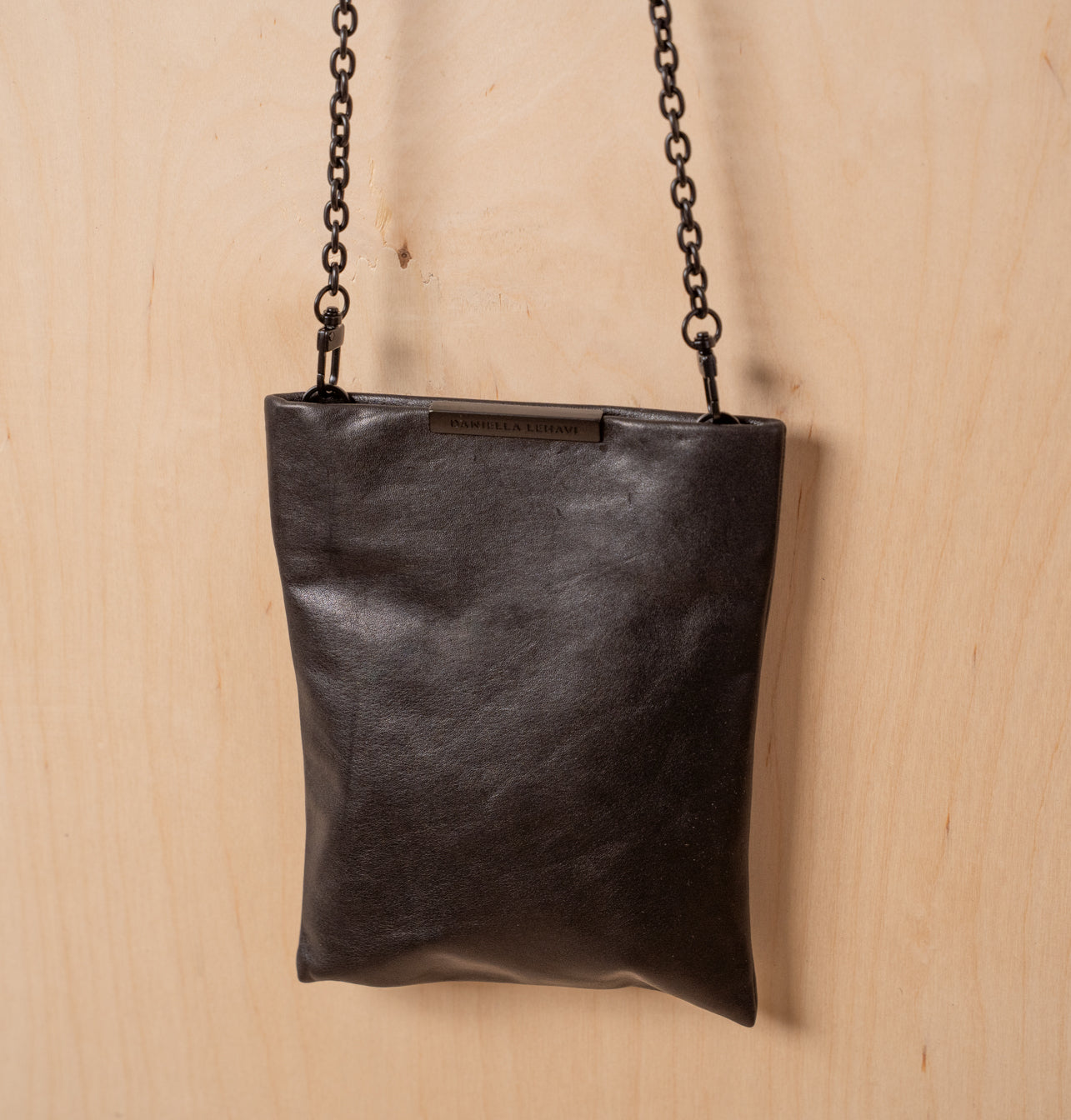 Ariella Mini Bag A small bag with a clean, precise design, featuring a leather strap interlaced with a chain for a sophisticated touch. The magnetic closure ensures easy use, while the refined structure gives it a polished and elegant look.