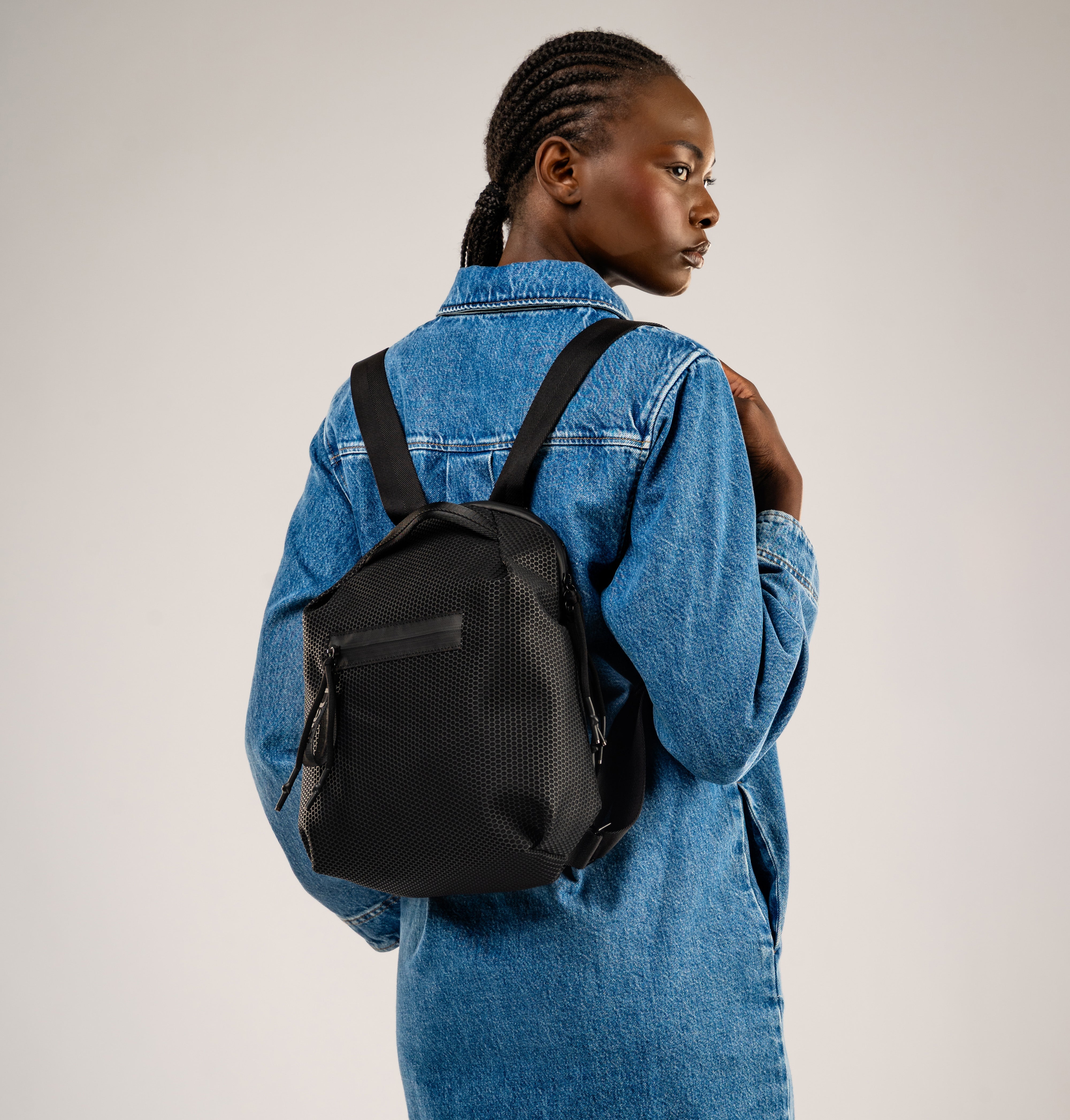 Its modern silhouette, inspired by origami folds, gives it a sculptural presence while staying practical for everyday use. Whether you're commuting, running errands, or exploring the city, the Bonnie Backpack keeps your essentials organized and your style effortless.