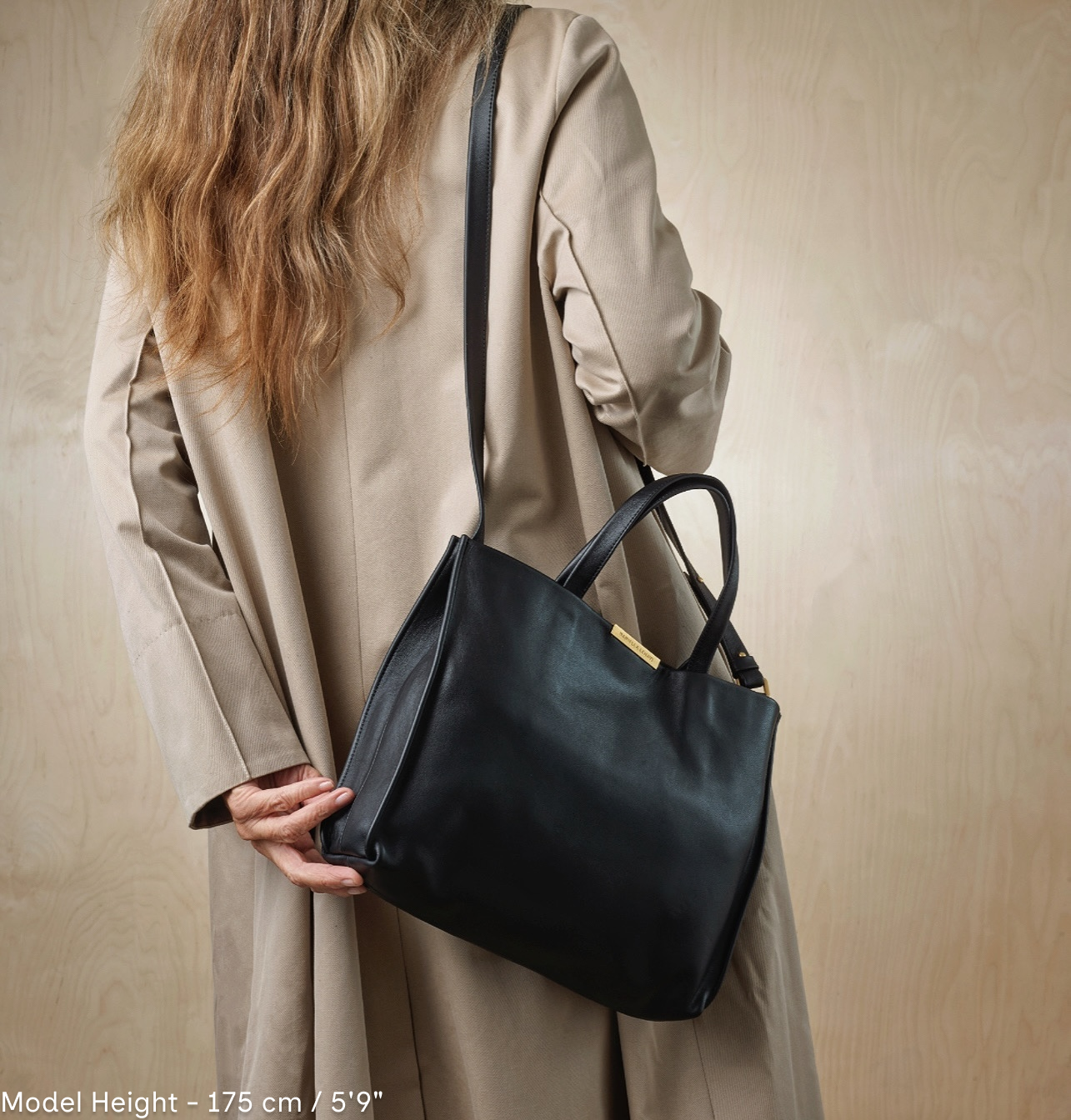 The Capri Satchel is a timeless rectangular bag with a clean silhouette, designed with both top handles and an adjustable shoulder strap for versatile carrying options. Its classic shape and refined details make it a reliable companion that stays relevant season after season.