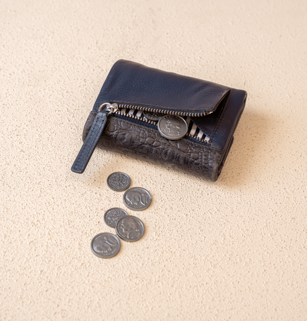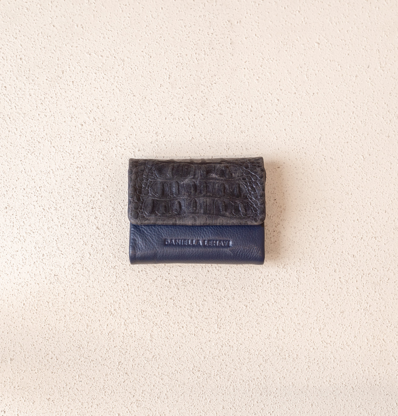 Crafted from a thoughtful mix of leathers in varied textures, it’s both practical and distinctive — a small accessory with a unique character and timeless appeal.
