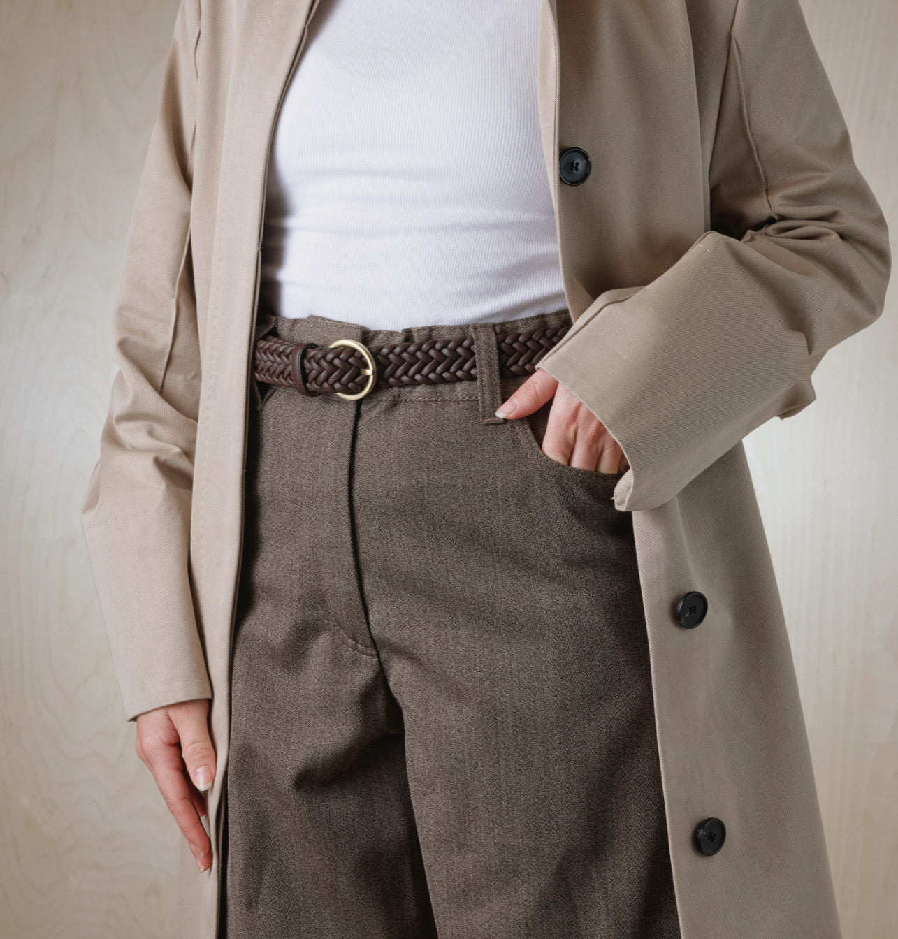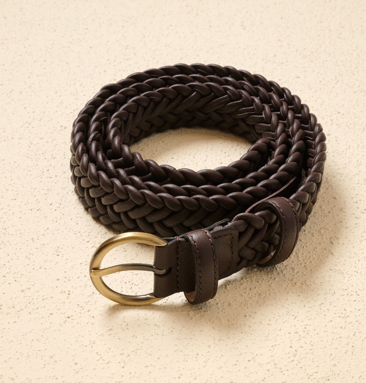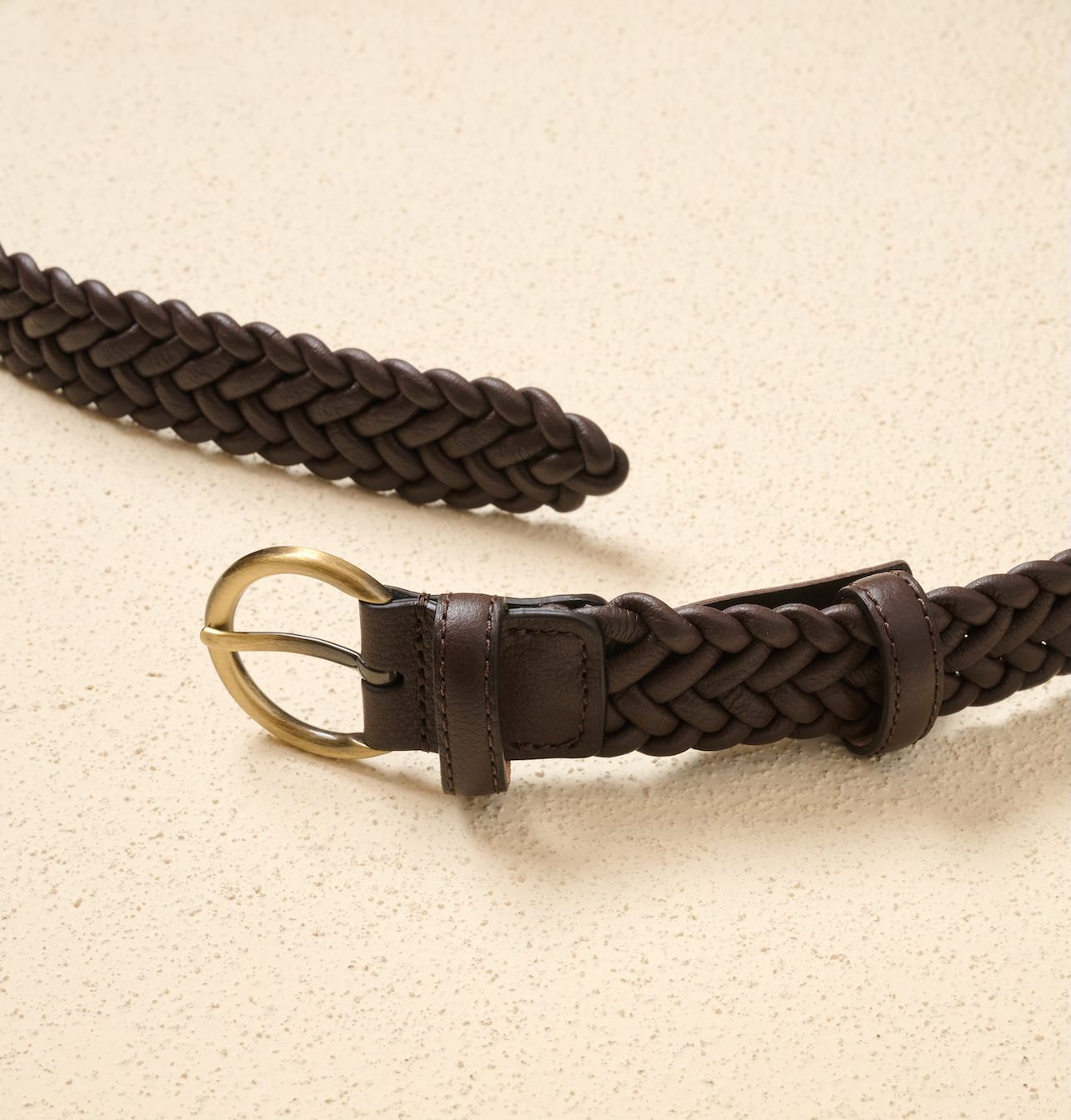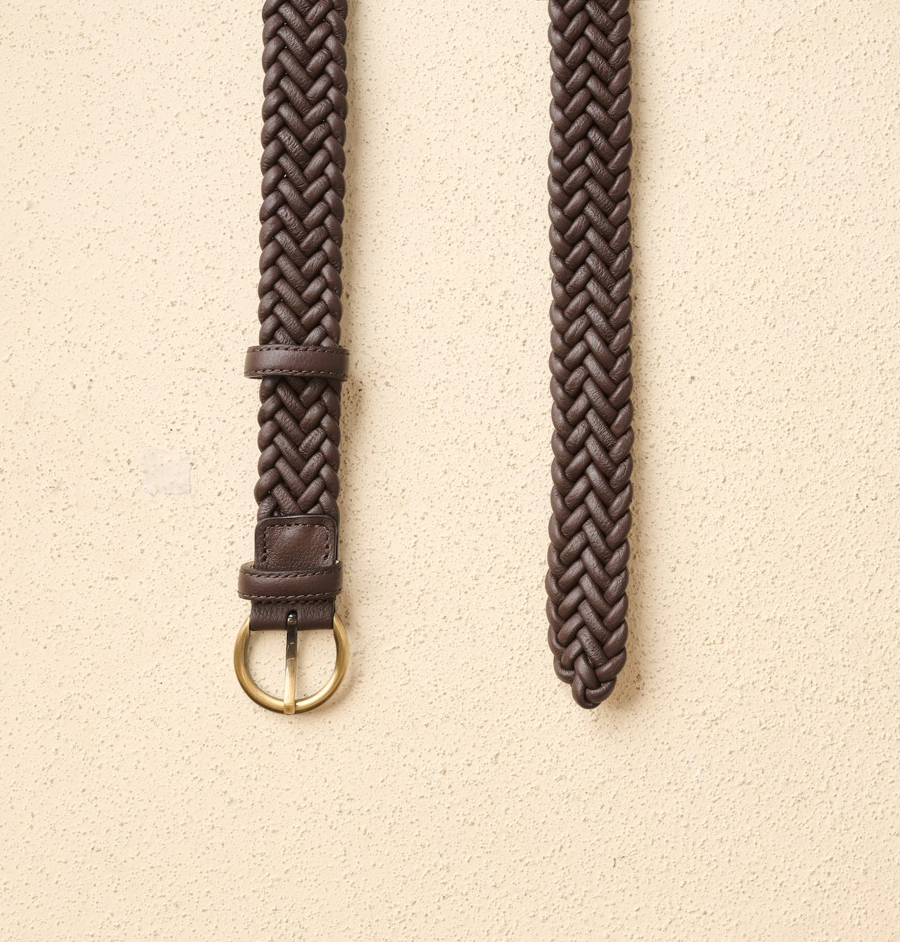 Braided belt with a natural, elegant look that adds depth to any outfit.