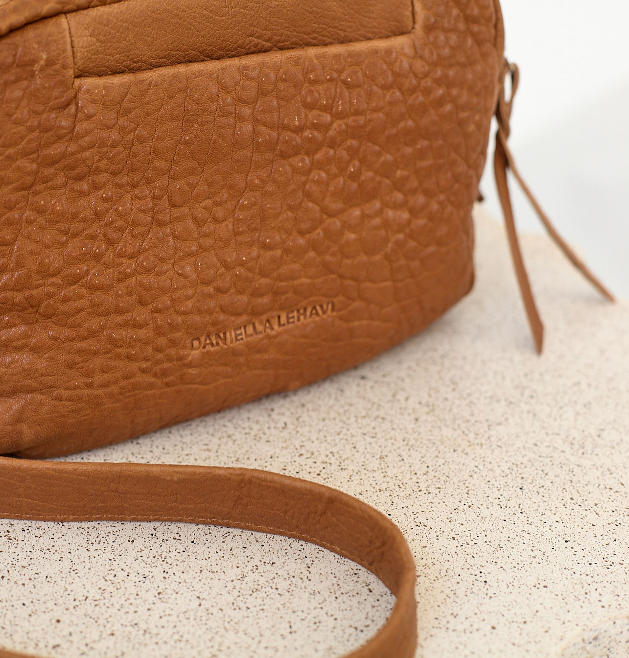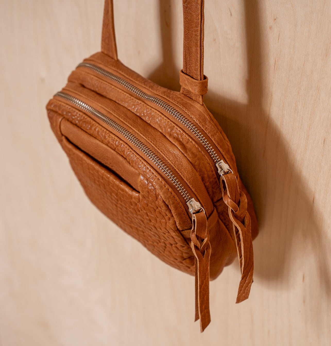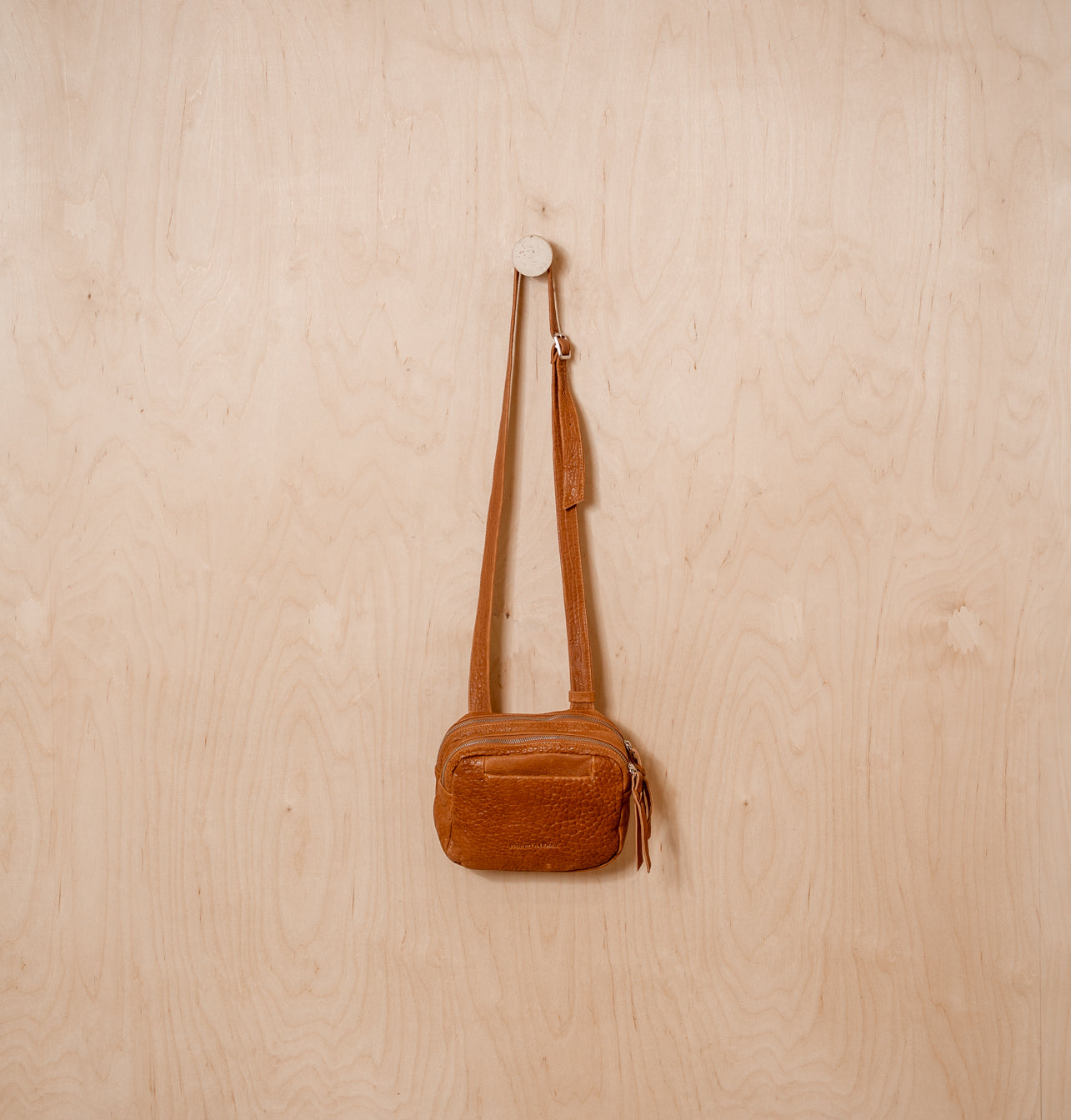 Back zip pocket - Built-in leather key holder with a strap