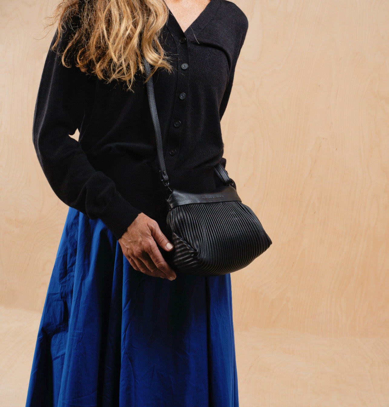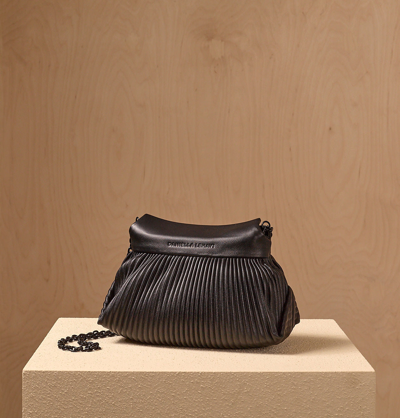 Oasis Mini Bag — An elegant evening bag design crafted from soft leather with a unique texture and clean lines. Comes with two removable crossbody straps — an adjustable leather strap and a stretch fabric strap — offering versatile and comfortable carrying options from day to night. Additionally, it can be carried as a clutch. Perfect for women who appreciate pieces that combine aesthetics, functionality, and understated presence.