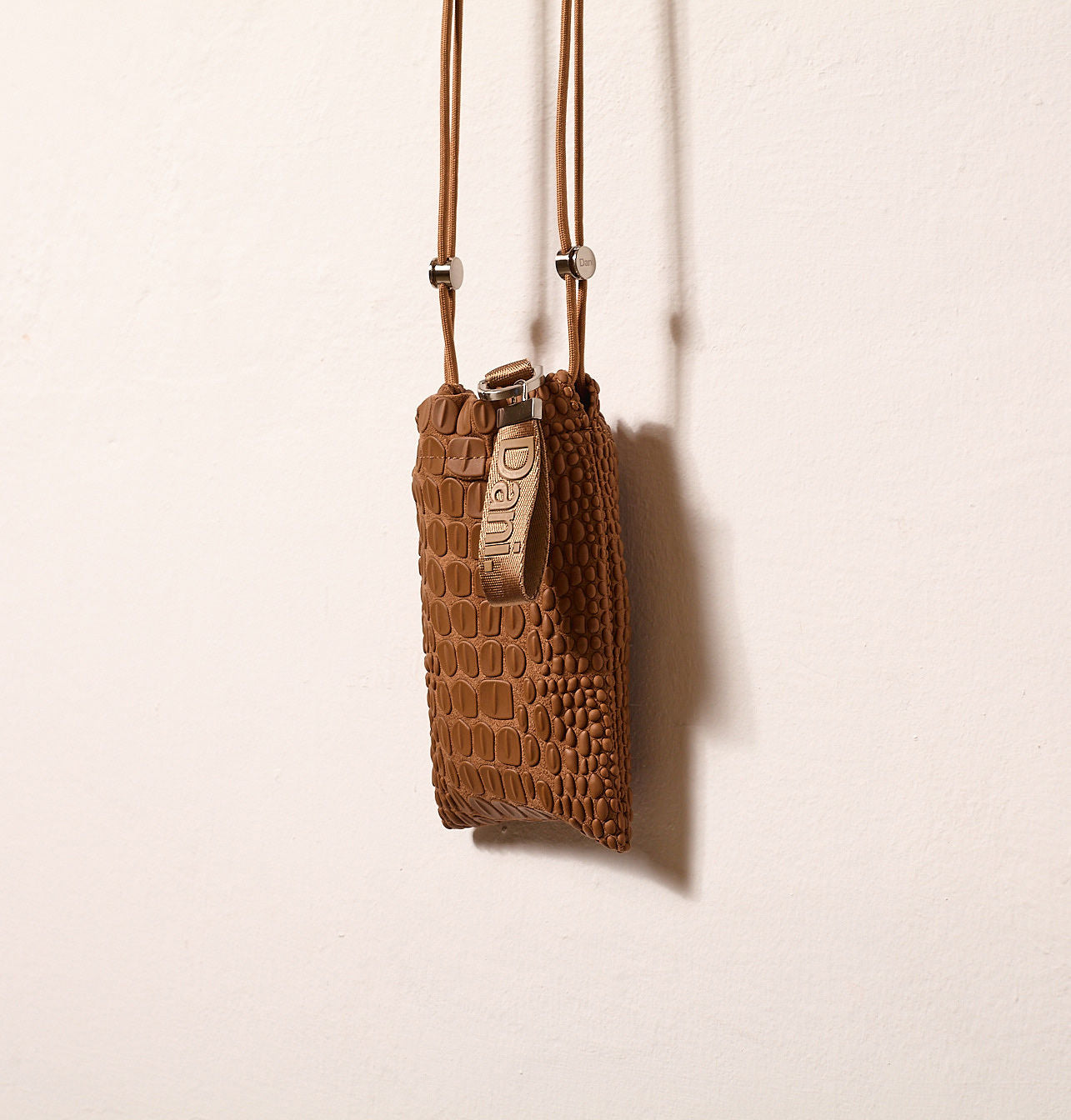 The Tokyo Phone Pocket is a phone bag from our Tokyo vegan collection, designed to keep your phone close by in both comfort and style. We've added a leather strap for enhanced comfort and shoulder grip, ensuring a secure and effortless carrying experience. Additionally, the adjustable strap offers a more secure and customizable fit for your convenience.