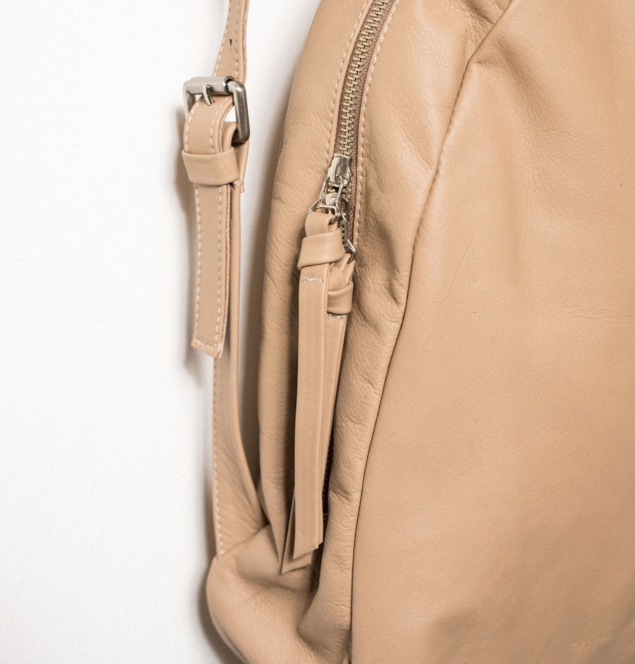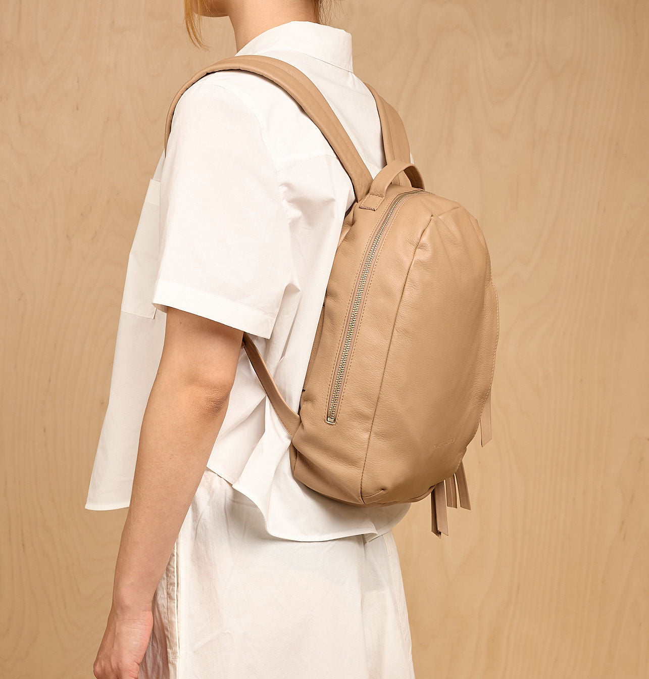 The Ori Small Backpack, designed for the creative director of Daniela Lehavi, is a timeless unisex model. Crafted from soft, textured Italian leather, this backpack features an elegant elliptical shape and a well-organized interior. The spacious main compartment includes small pockets for convenient storage of personal items, while zippered pockets on the front and back provide additional functionality. Adjustable shoulder straps ensure a personalized fit, making it the perfect blend of style and practicality.
