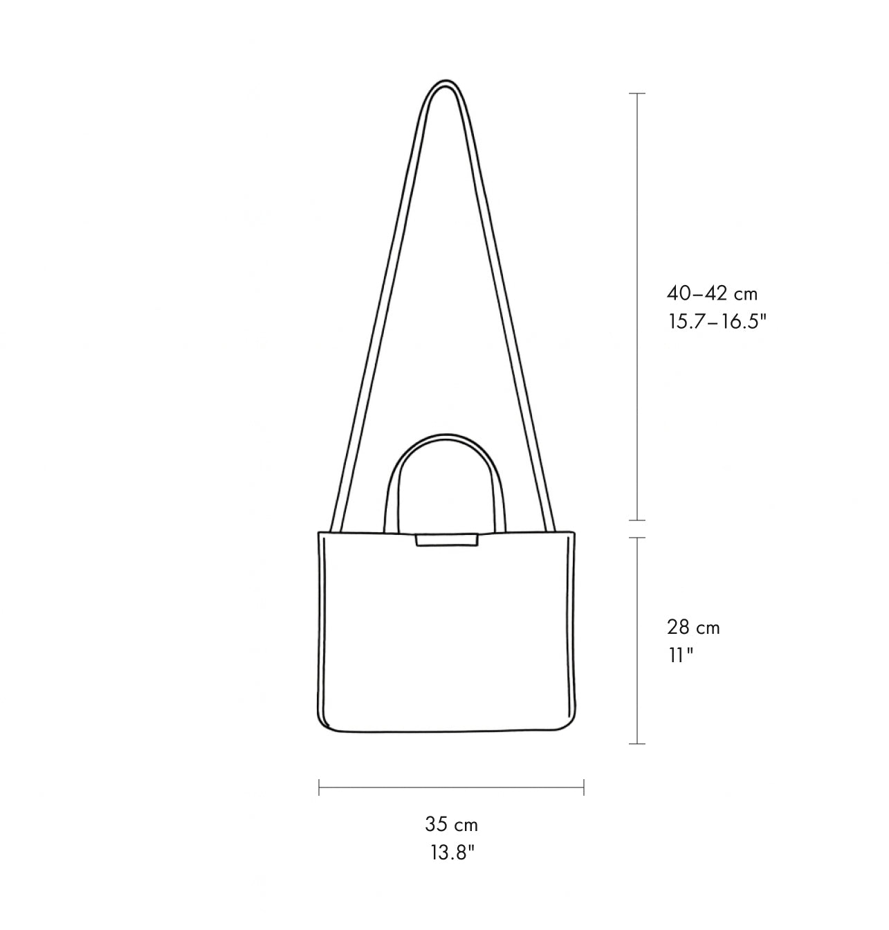 - Adjustable leather shoulder strap, 84–89 cm (33–35″), drop: 40–42 cm (15.7–16.5″)