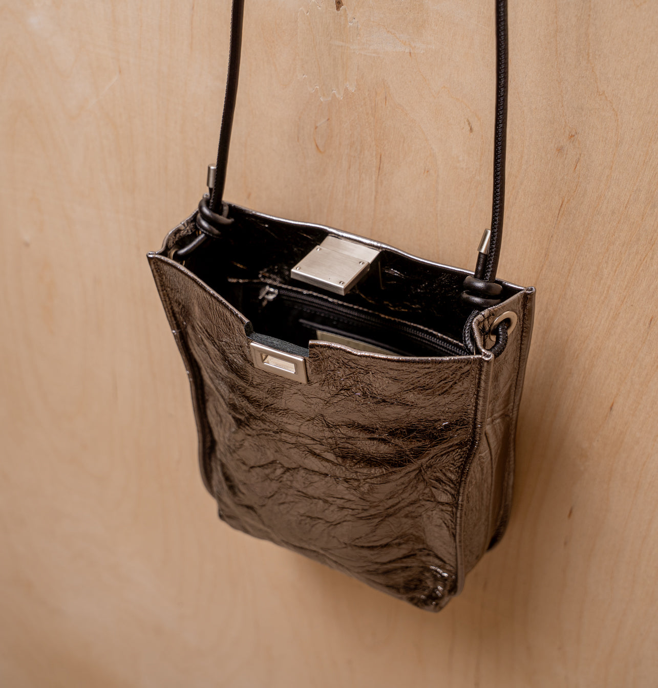 - Leather shoulder strap, length 118 cm (46.5″), drop 58 cm (22.8″)