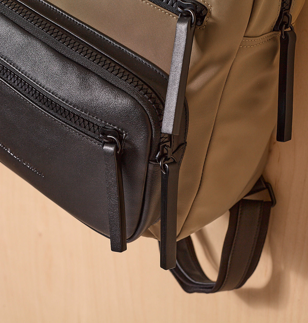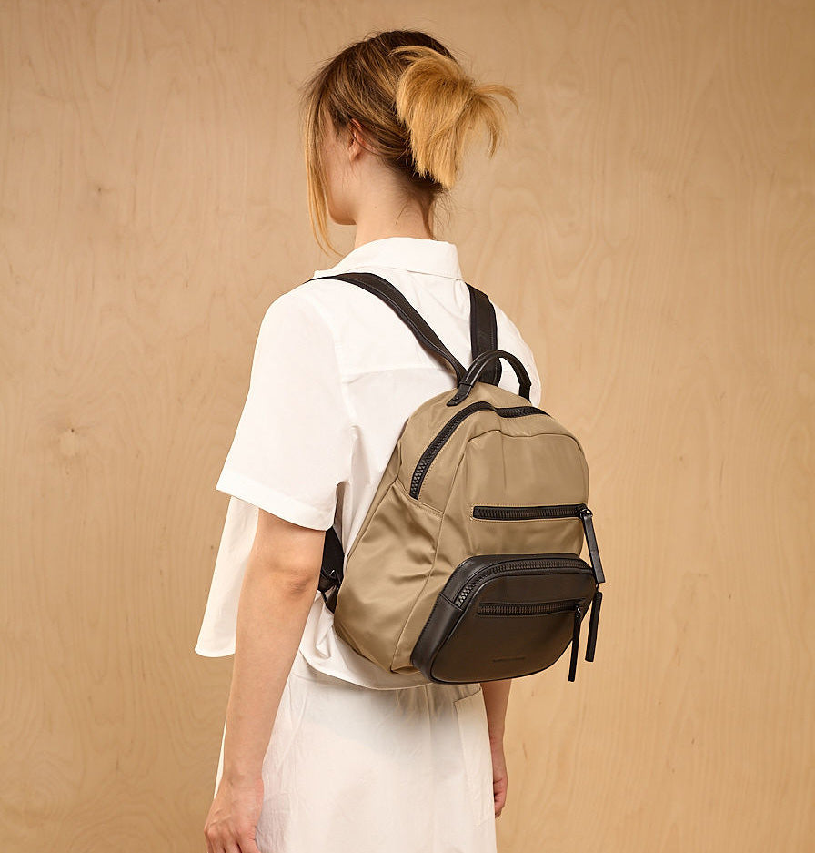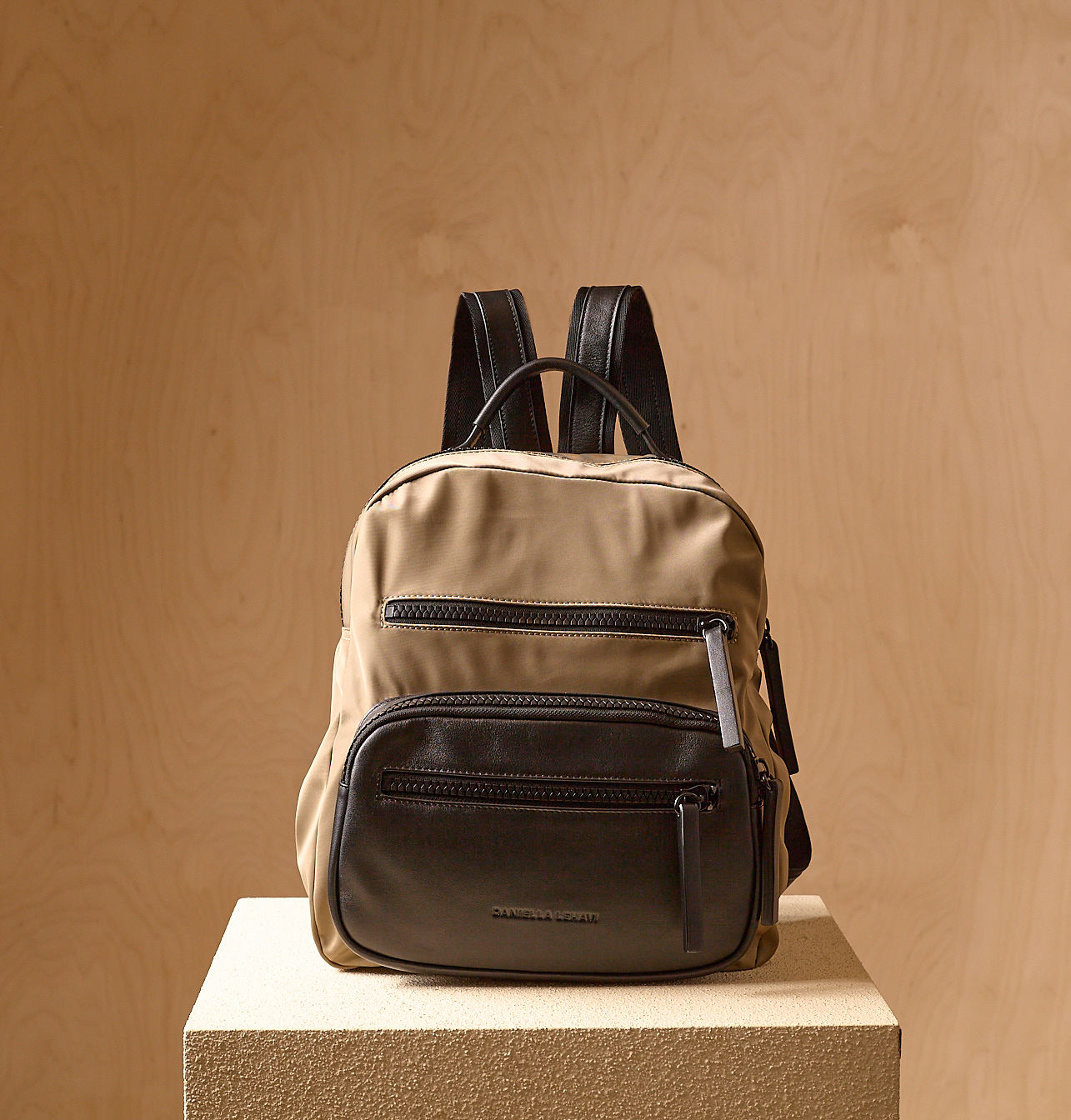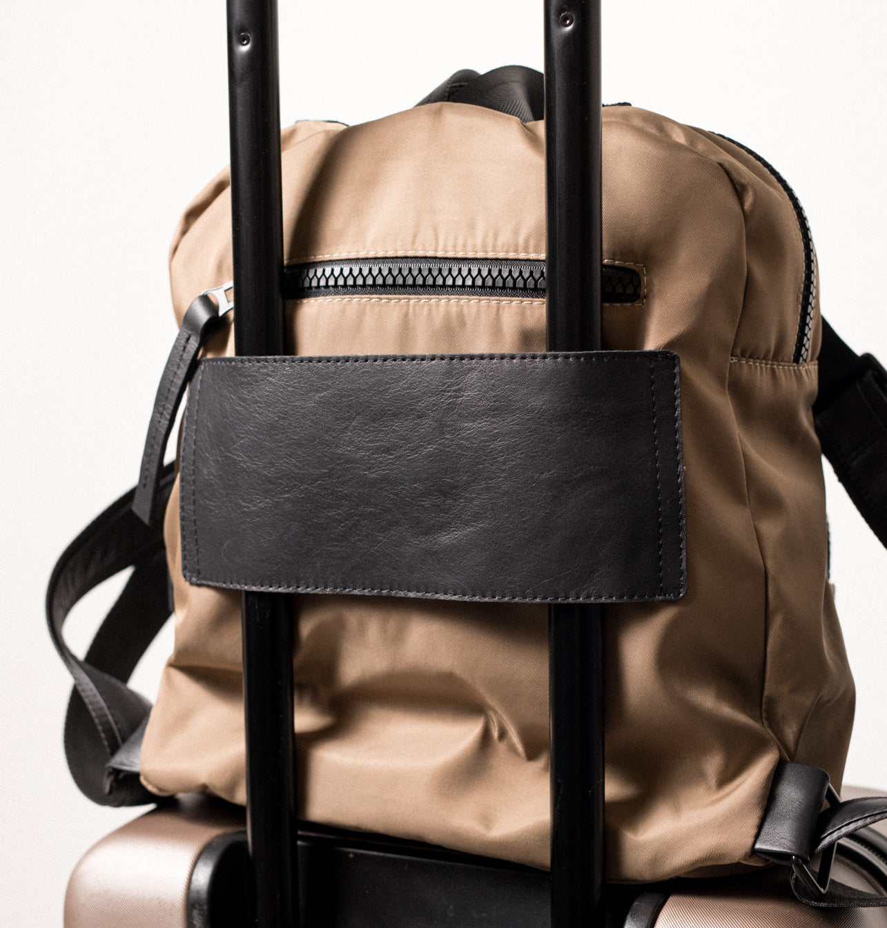 Our Porto Backpack is a medium-sized backpack with a clean and sophisticated design, making it a must-have for anyone who loves to travel and explore. Made from a unique combination of easy-to-clean nylon and leather, it features a smart internal and external pocket layout for effortless organization. It also includes a convenient strap that fits over a suitcase handle — making it the perfect travel companion.