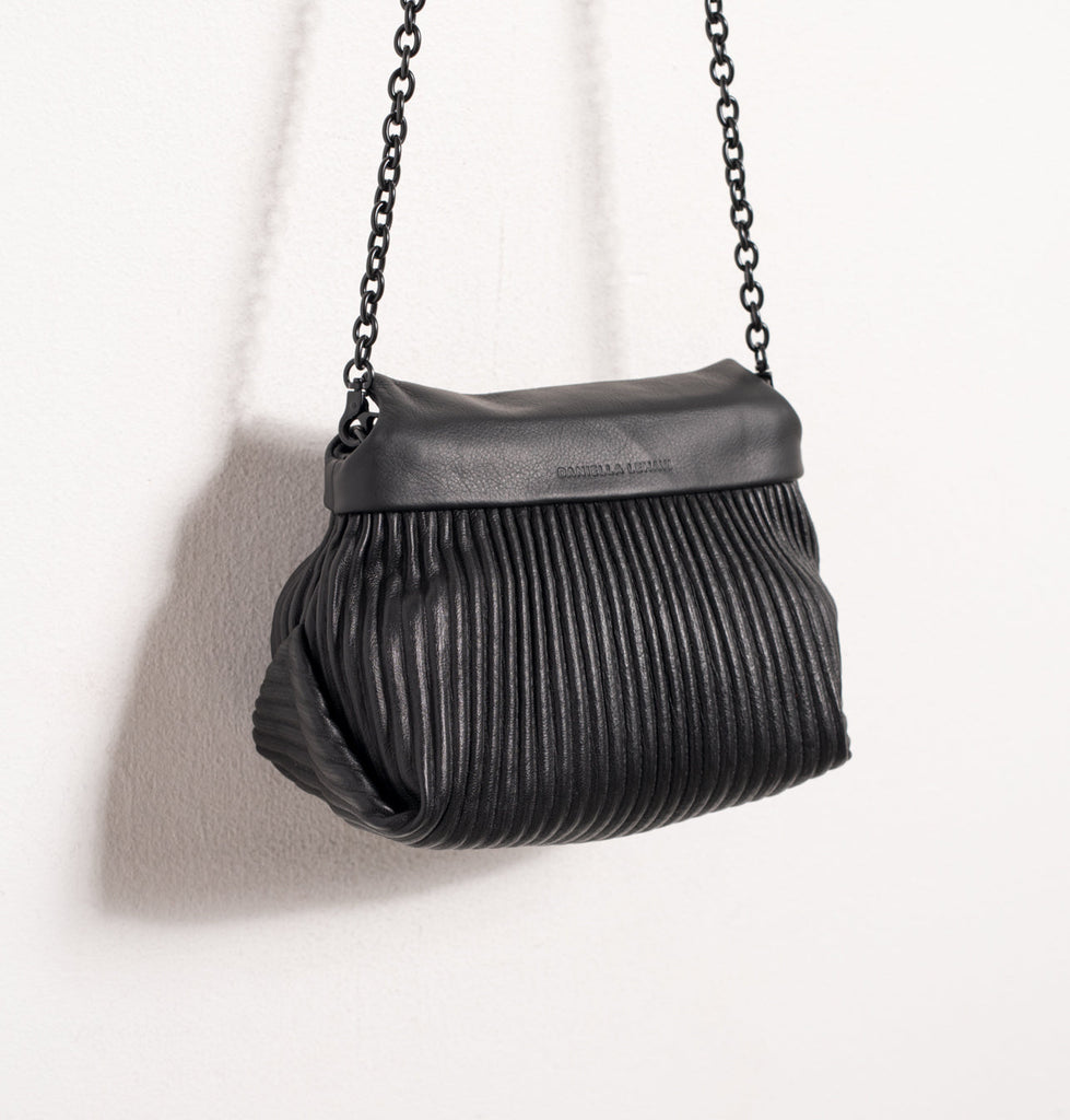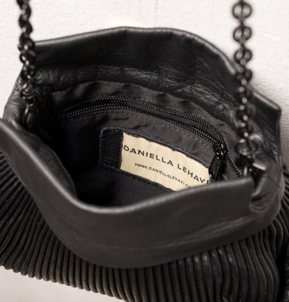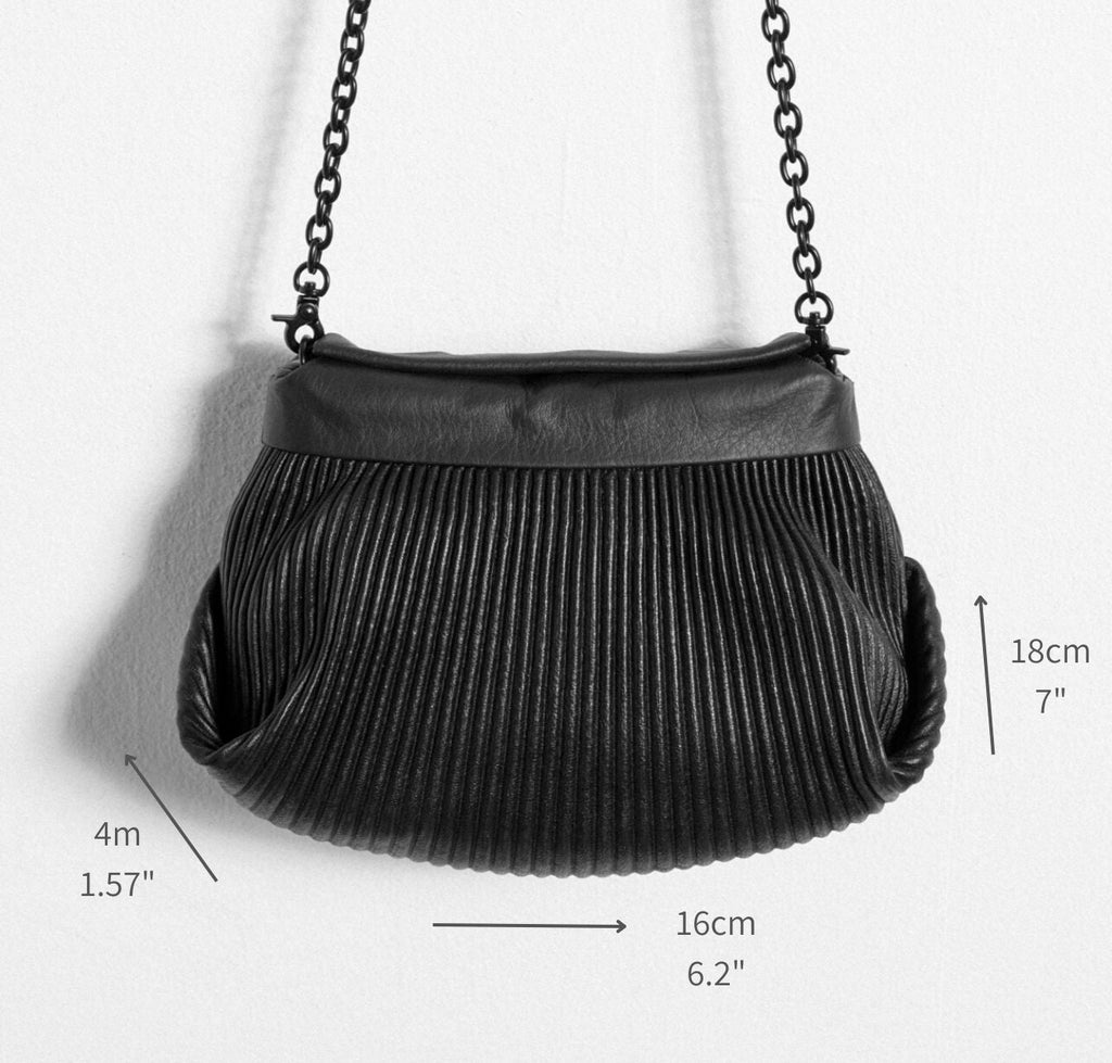 Oasis Mini Bag — An elegant evening bag design crafted from soft leather with a unique texture and clean lines. Comes with two removable crossbody straps — an adjustable leather strap and a stretch fabric strap — offering versatile and comfortable carrying options from day to night. Additionally, it can be carried as a clutch. Perfect for women who appreciate pieces that combine aesthetics, functionality, and understated presence.