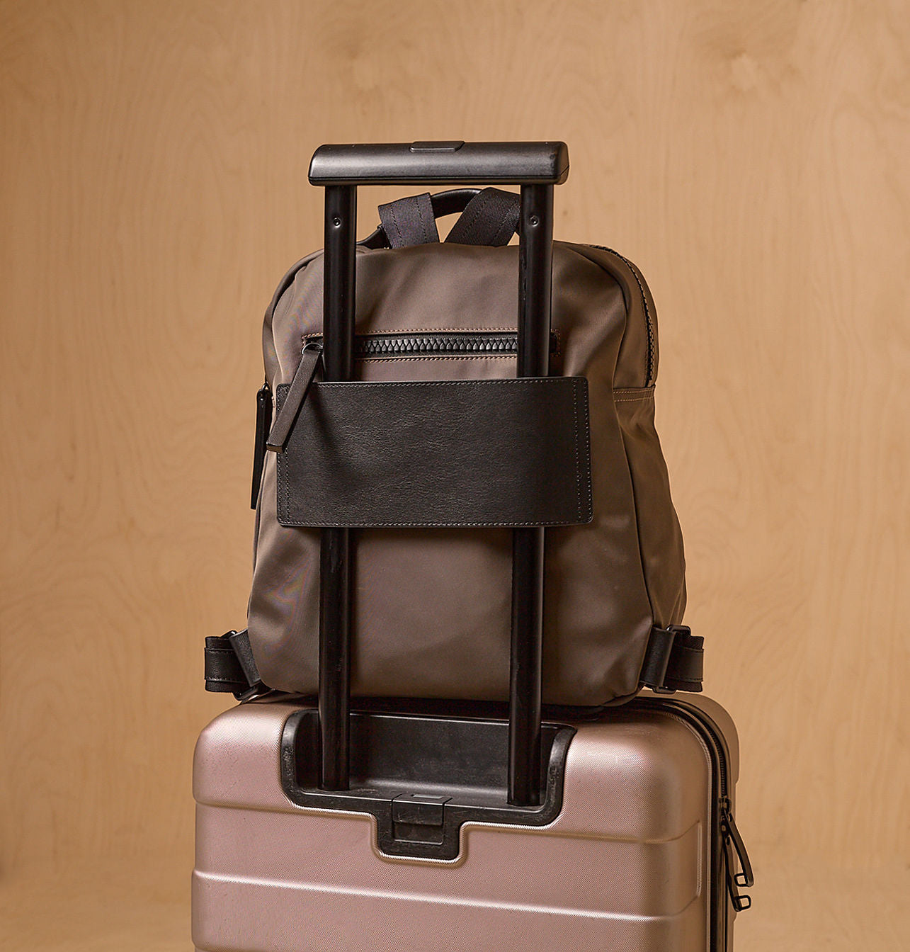 Our Porto Backpack is a medium-sized backpack with a clean and sophisticated design, making it a must-have for anyone who loves to travel and explore. Made from a unique combination of easy-to-clean nylon and leather, it features a smart internal and external pocket layout for effortless organization. It also includes a convenient strap that fits over a suitcase handle — making it the perfect travel companion.