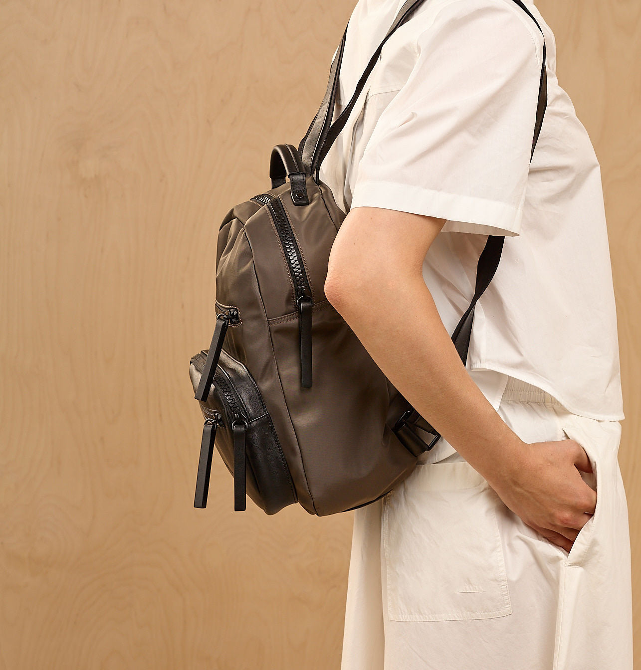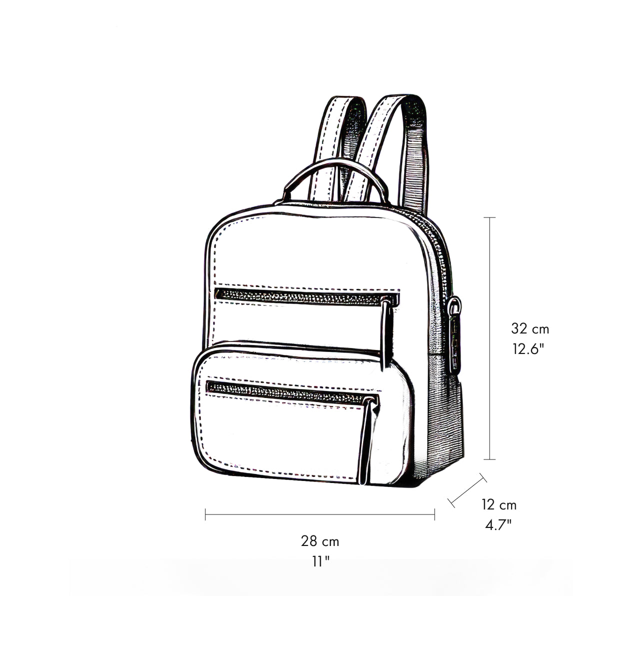 - 3 front zippered pockets