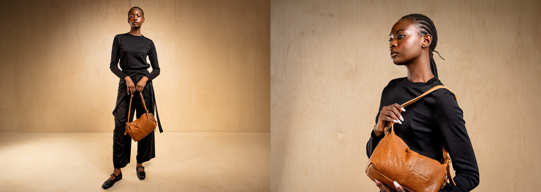 Available in two sizes — one compact, one more spacious — with two strap lengths so you can carry it the way that suits you best.