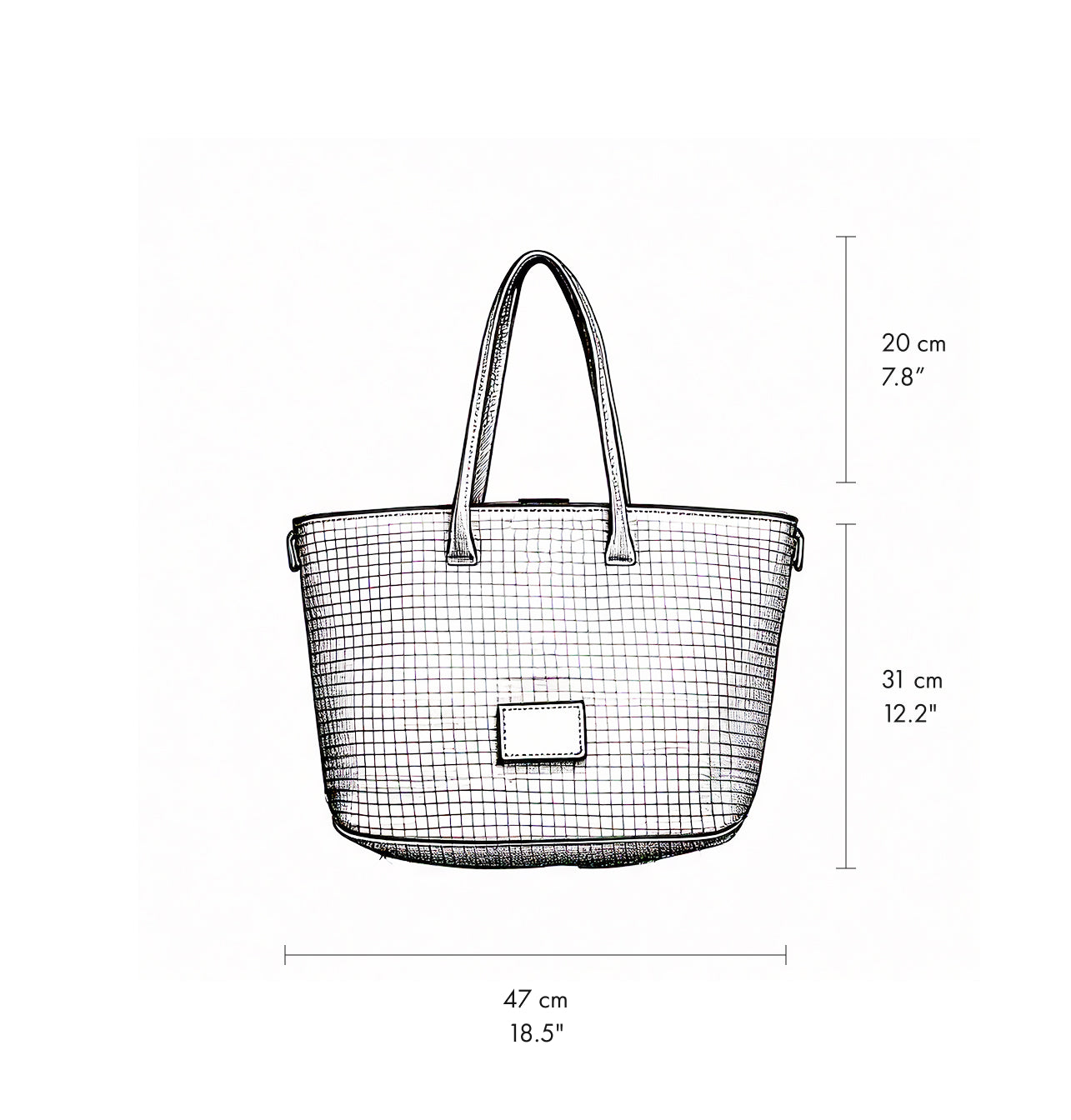 - 1 inner zipper case: Width: 21 cm (8.2"), Height: 14 cm (5.5")