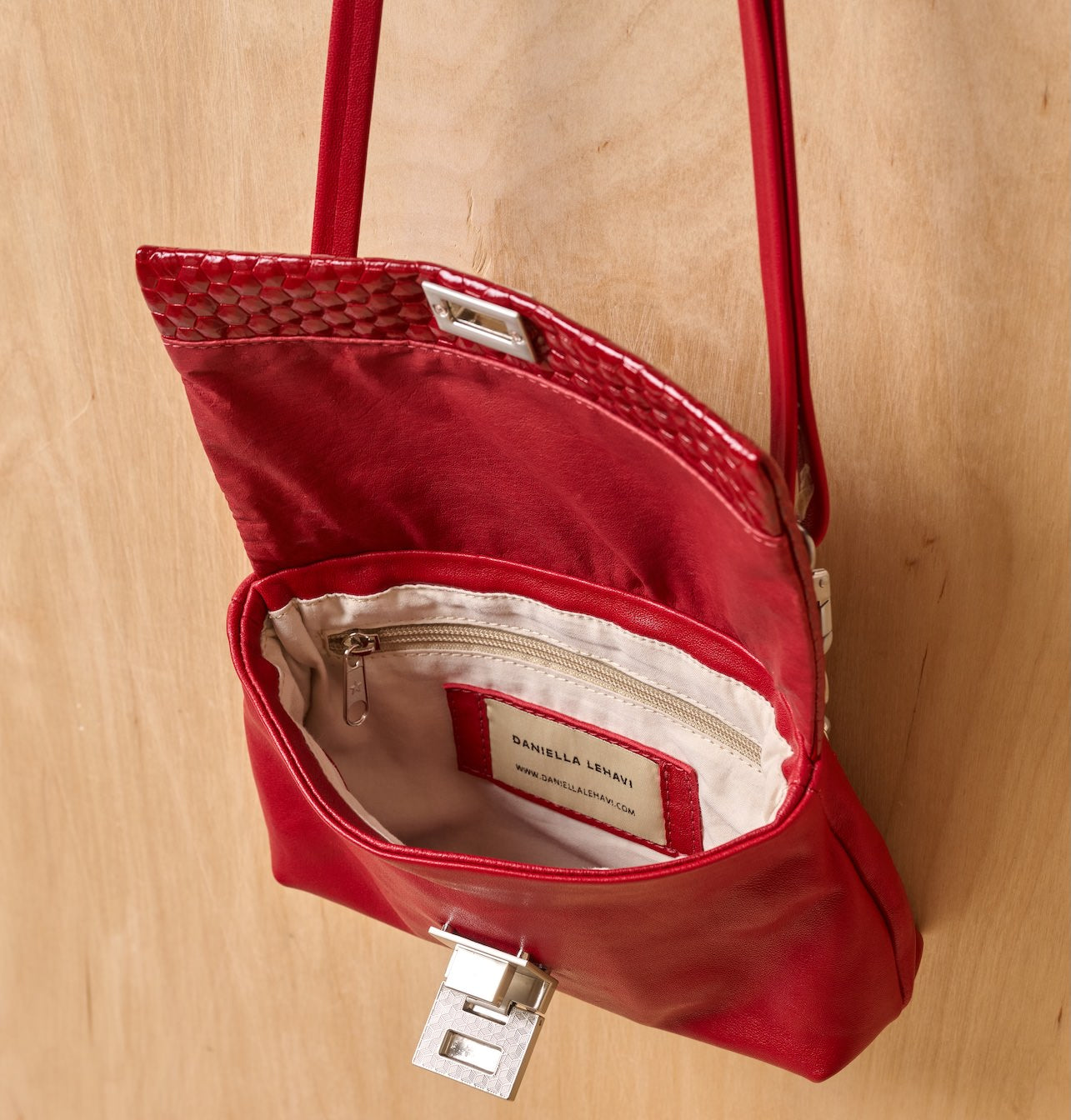 A small, elegant bag with a soft silhouette. The combination of leathers creates a lively look with rich depth. Two interchangeable straps add flexibility and character to both the bag and the way it’s carried, while the metallic clasp completes its refined and feminine appearance.