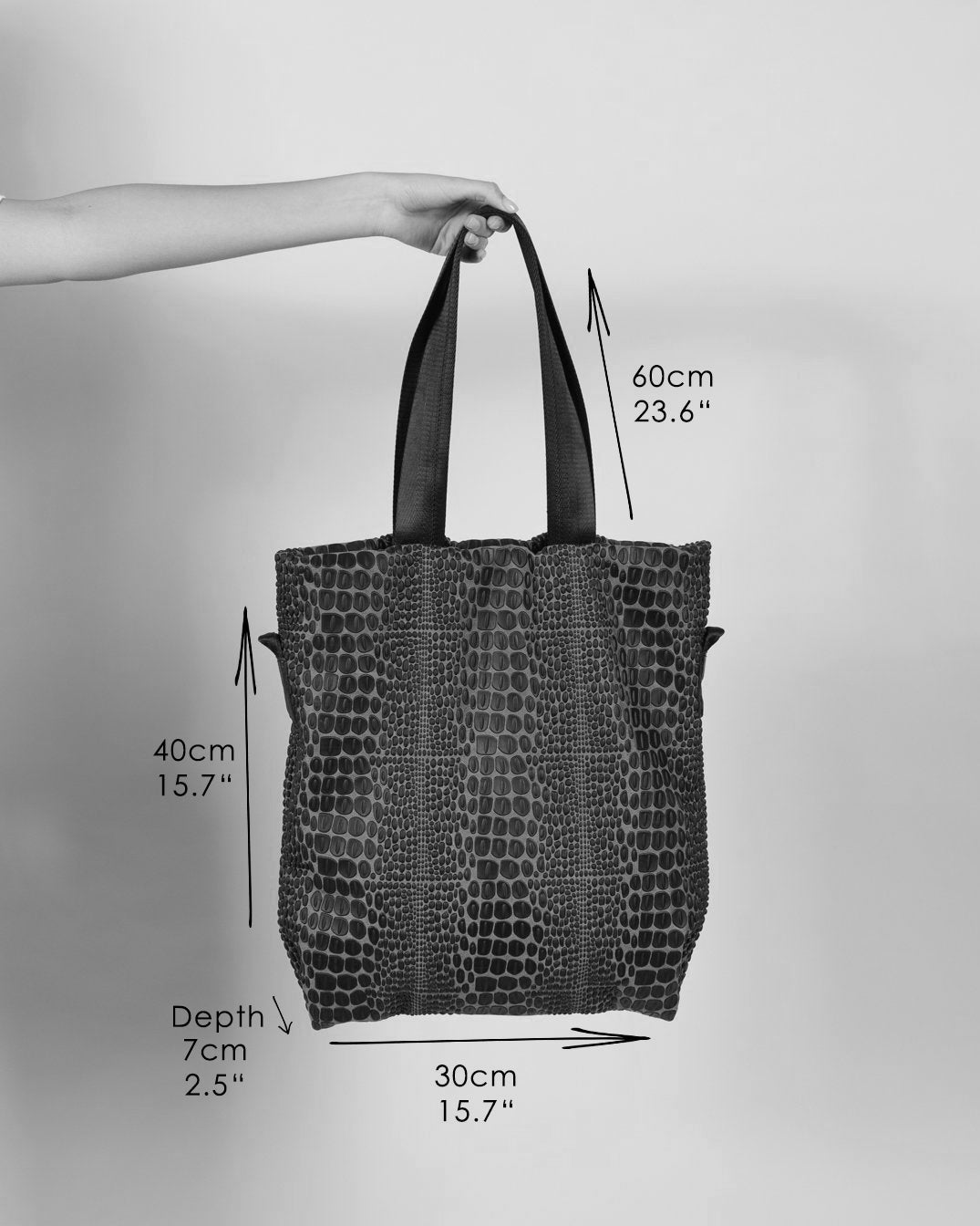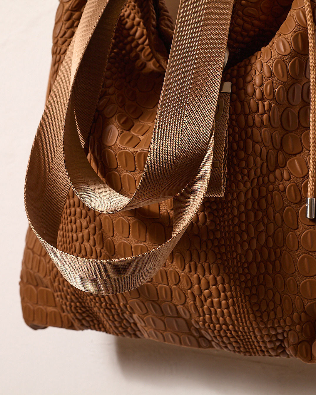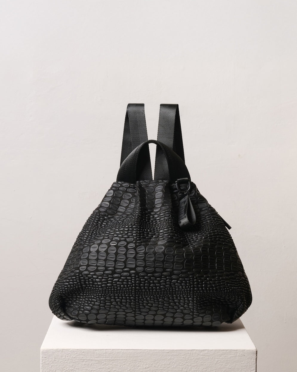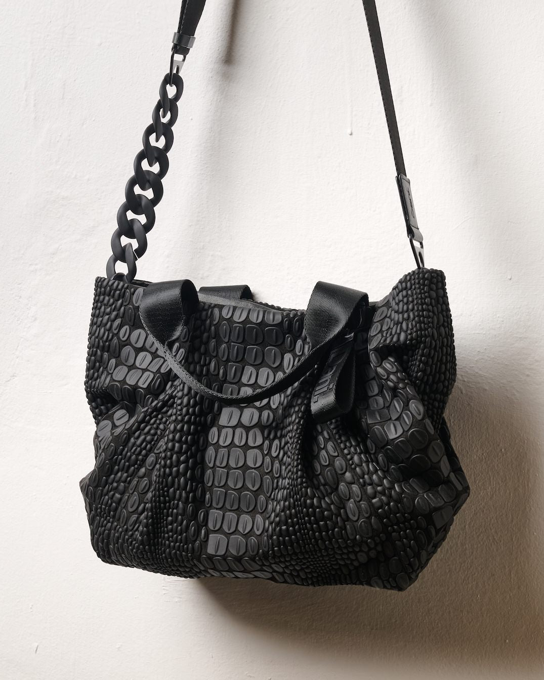 We call it Circular Design, although we prefer the term Circular Beauty. Our vegan bags are crafted from recyclable plastic bottles - a renewable material that can be reused and recycled in the future. They require less water and energy, and they become even more stunning with each use.