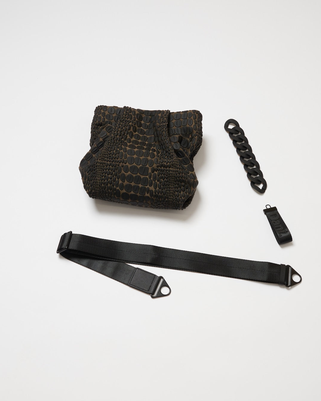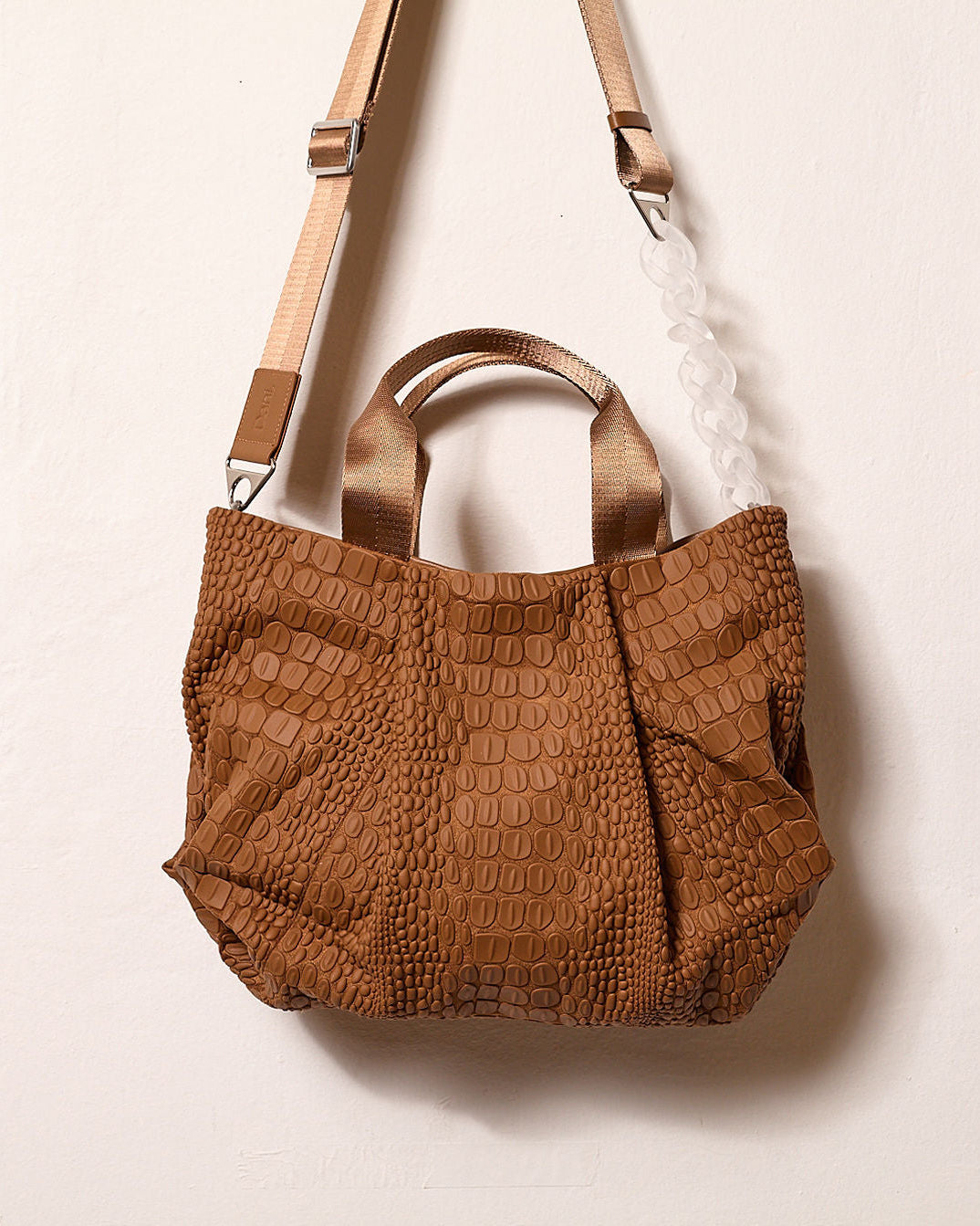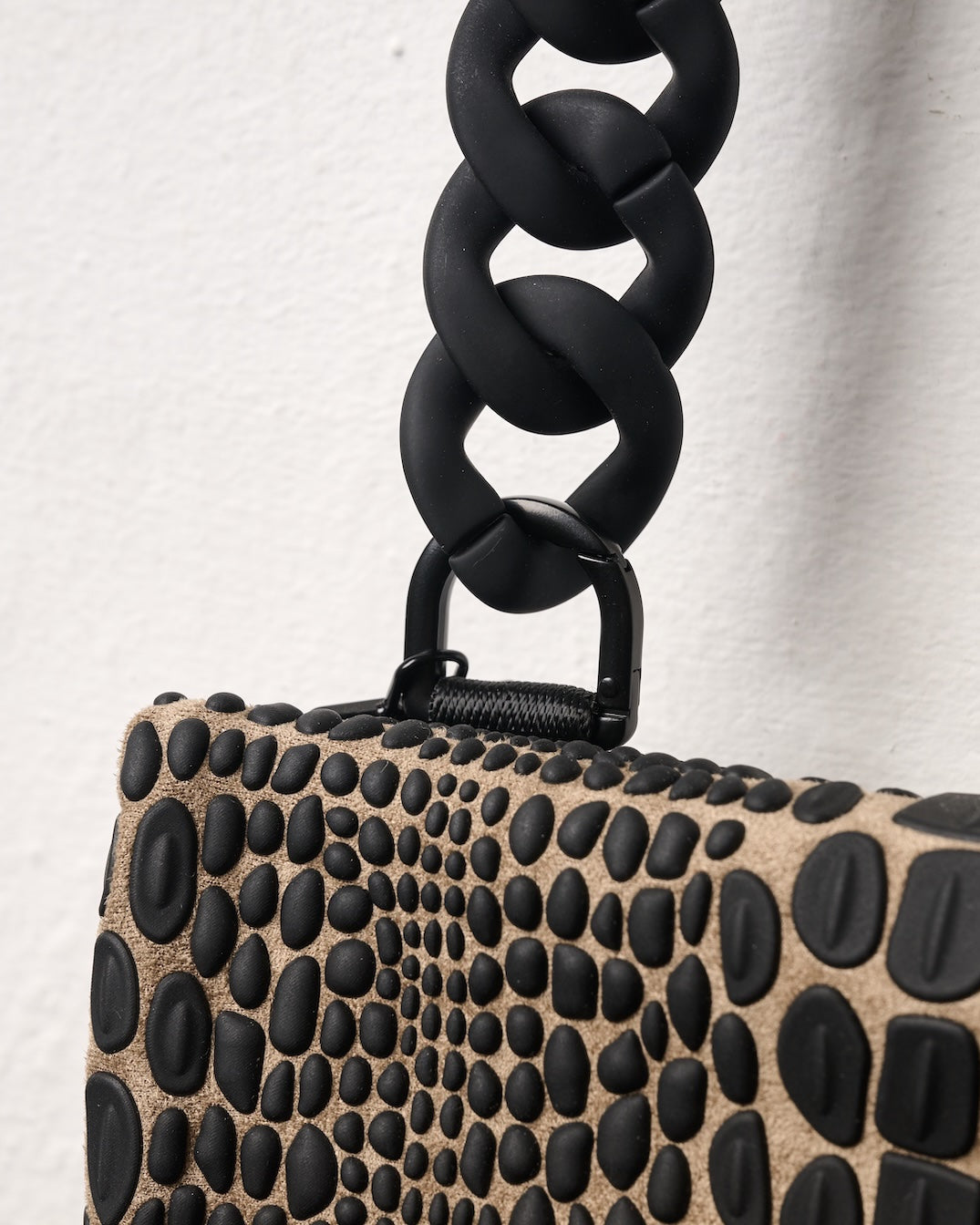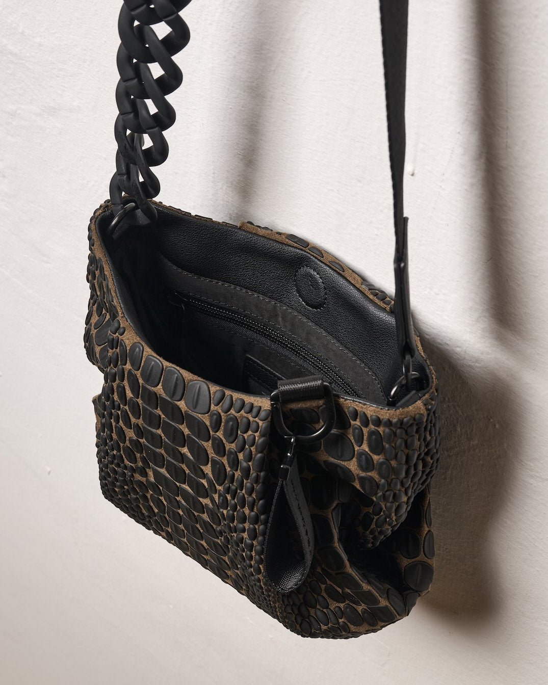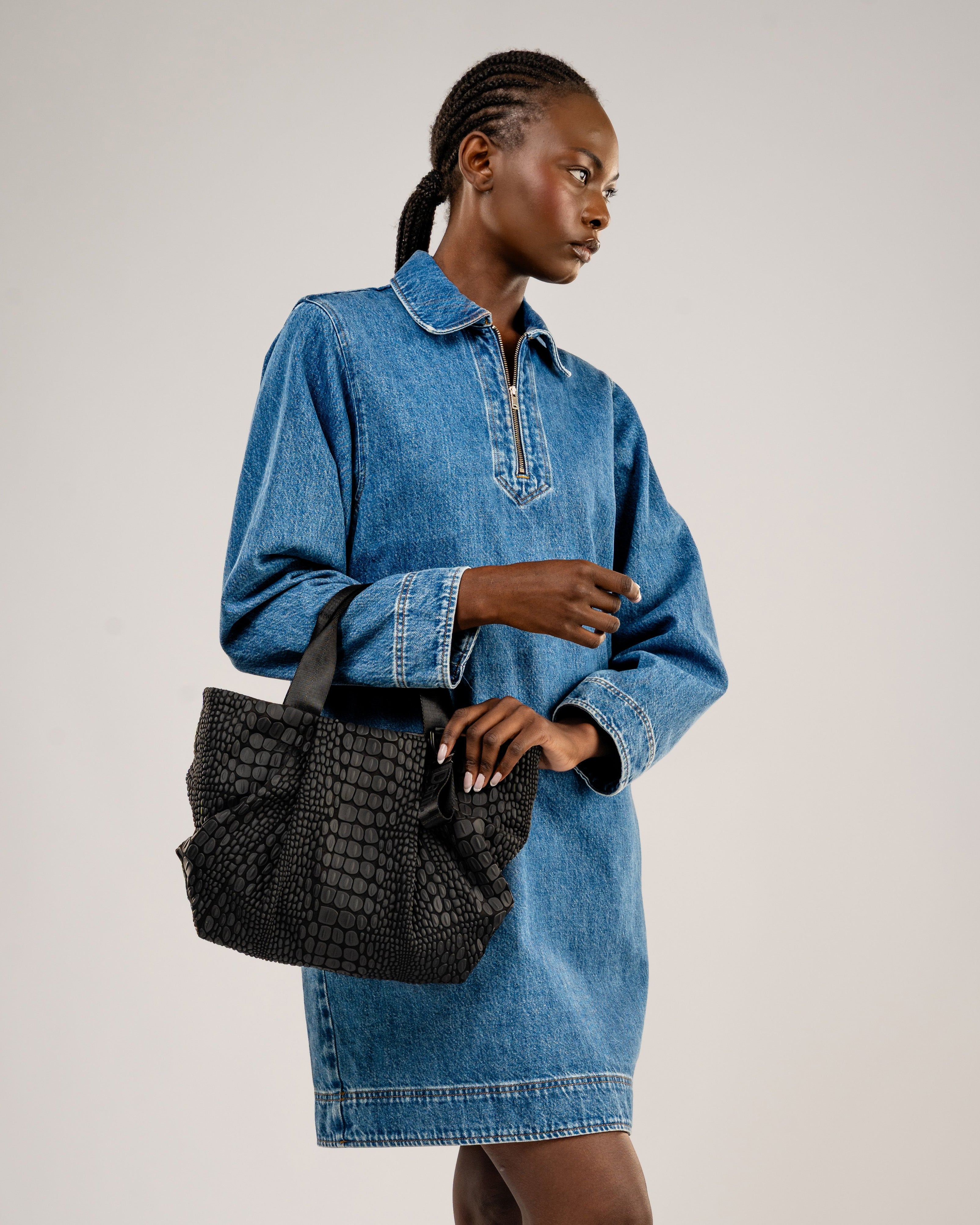We call it Circular Design, although we prefer the term Circular Beauty. Our vegan bags are crafted from recyclable plastic bottles - a renewable material that can be reused and recycled in the future. They require less water and energy, and they become even more stunning with each use.