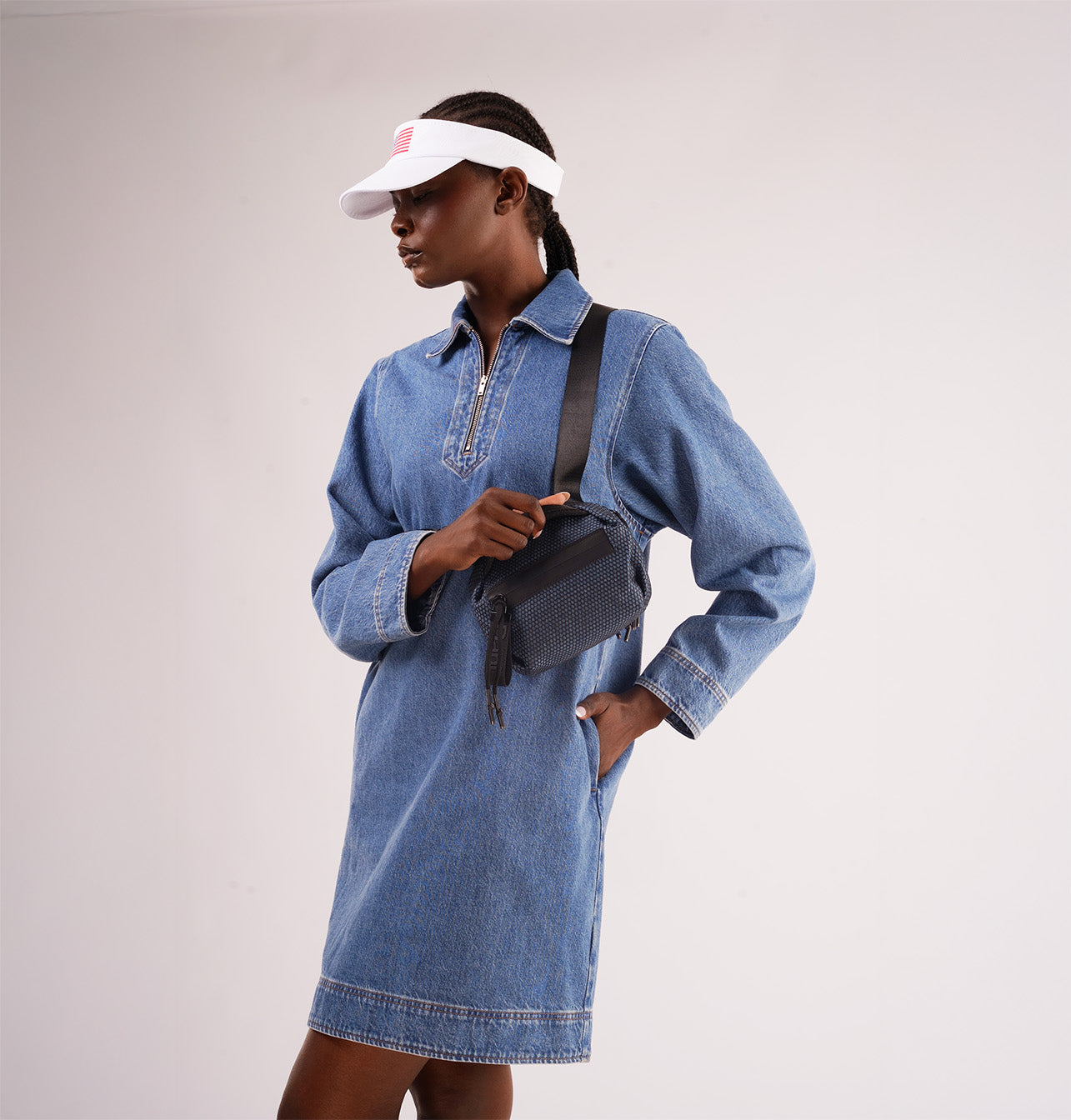 The Bonnie Mini Crossbody Bag is our all-time bestseller and the perfect vegan alternative. Now in a new version of Bonnie Mini, the denim fabric, made from recycled fabrics, adds an environmentally friendly touch. With its timeless design inspired by the art of origami, unique shape, and color, this beautiful bag may appear small, but it's spacious enough to hold all your essentials.