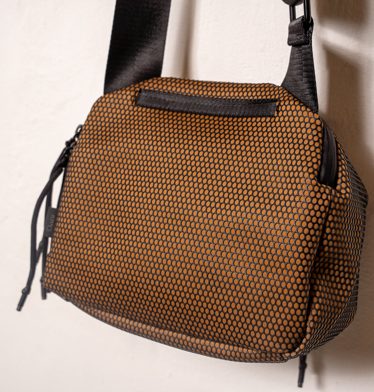 The Bonnie crossbody bag is our all-time bestseller and the perfect vegan alternative. The fabric, made from recycled bottles, adds an environmentally friendly touch. With its timeless design inspired by the art of origami, unique shape, and color, this beautiful bag may appear small, but it's spacious enough to hold all your essentials.