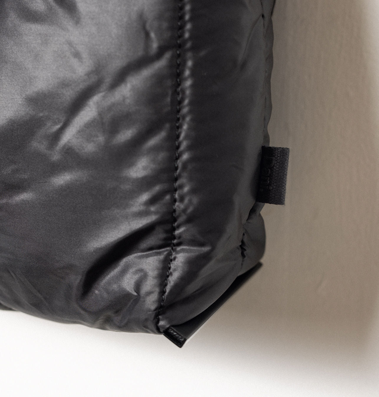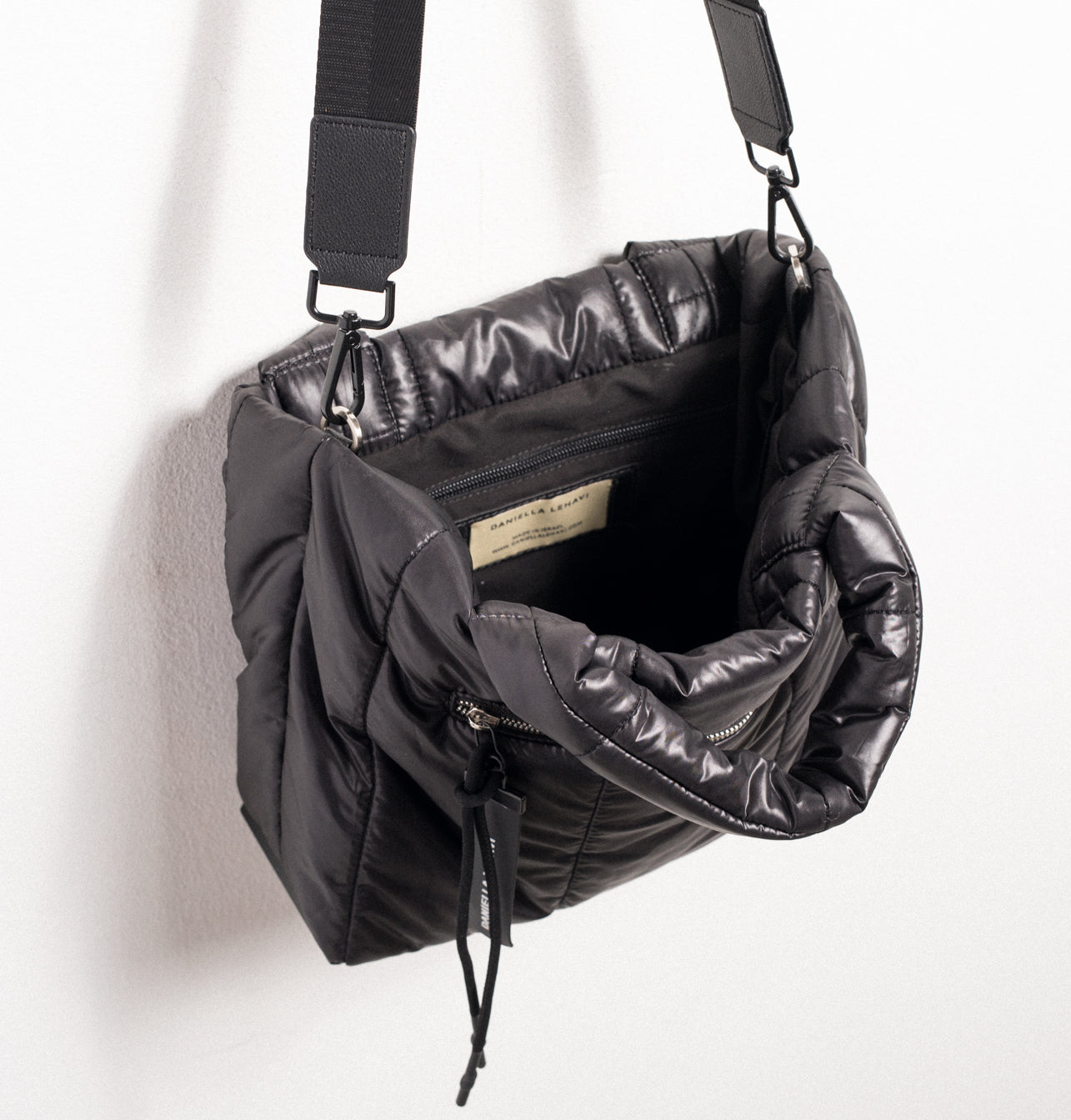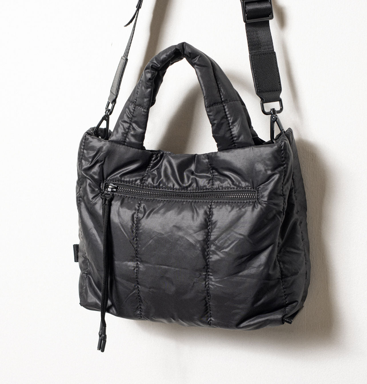 The Quilt Medium Tote bag is crafted from recycled vegan Nylon, offering a sustainable yet luxurious touch. Its soft quilted texture adds dimension and a subtle sheen. The bag has one spacious main compartment with a small inside zipped pocket and an external zipped pocket.