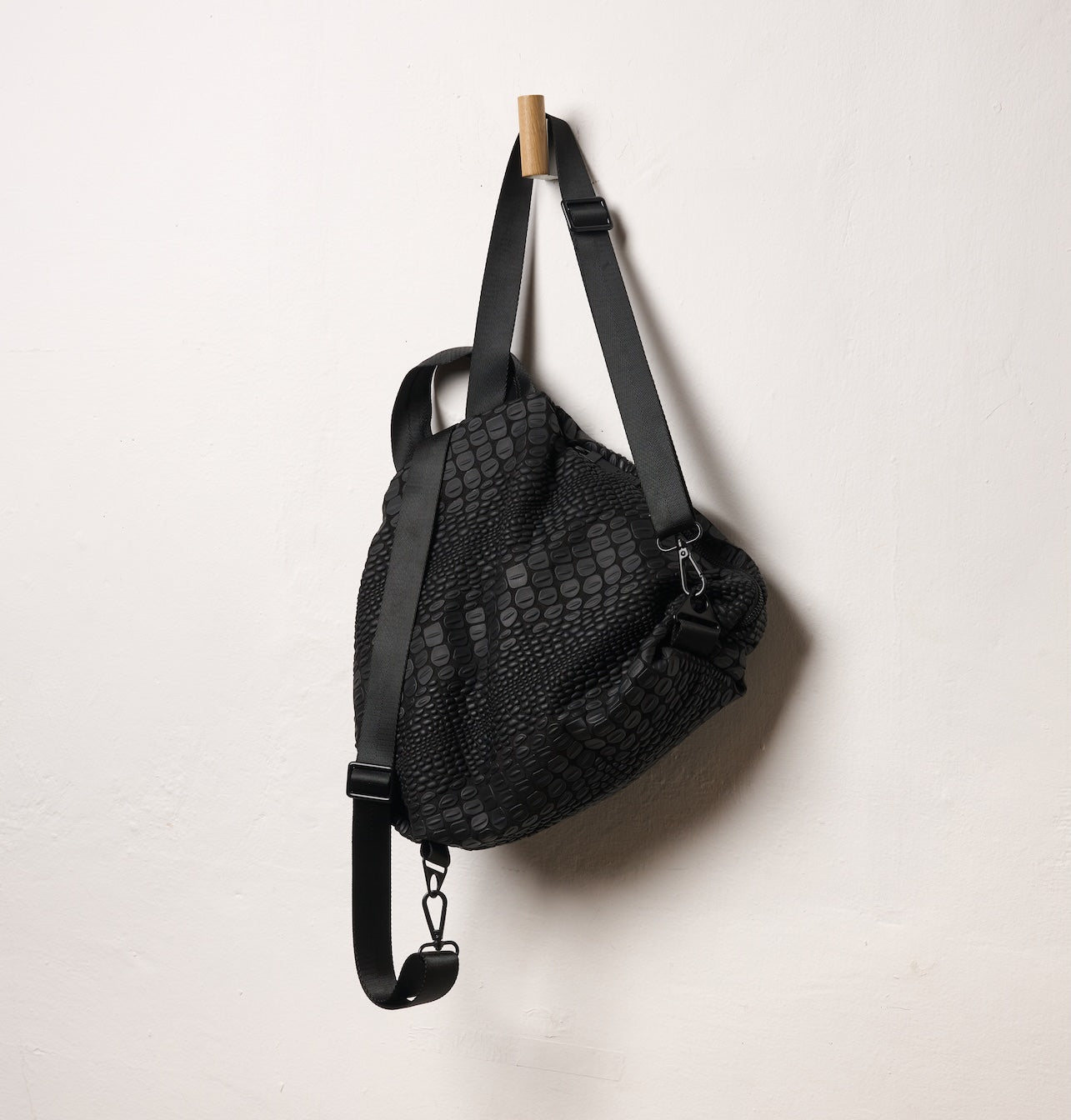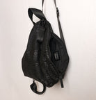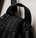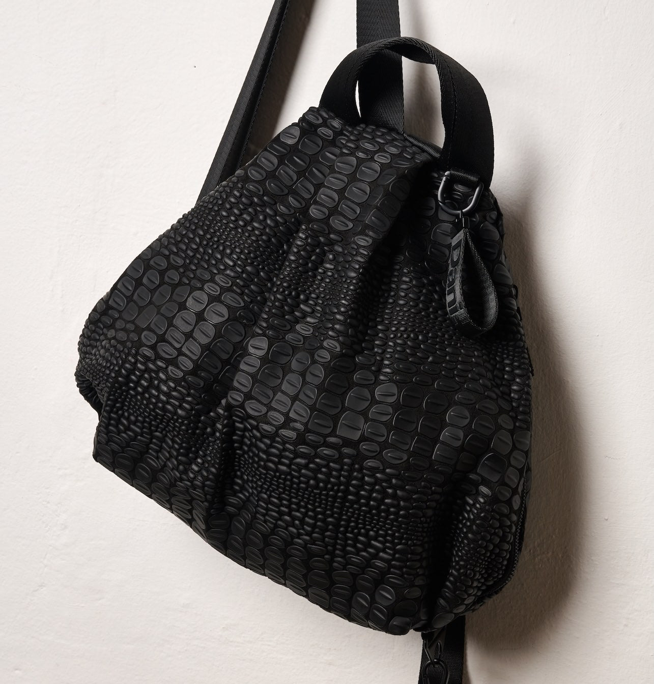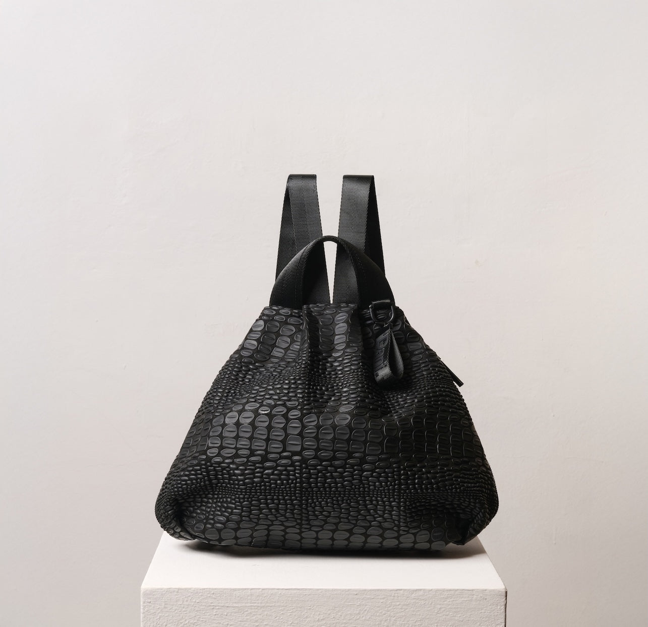 Tokyo Backpack A soft structured backpack with a unique croc texture developed in our studio. The side opening creates a subtle diagonal line that gives the bag a distinctive and effortless look, while allowing easy access and organized storage.