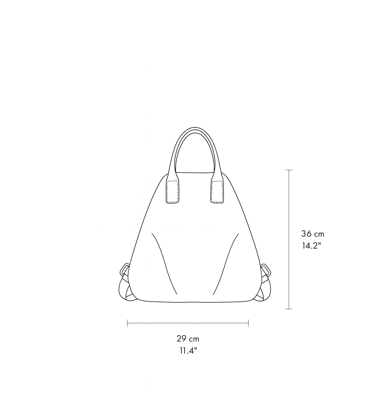 Two wide shoulder straps and a short top handle complete a practical design for everyday use.