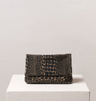 Tokyo Clutch A bag with a clean silhouette and a croc texture developed in our studio, creating a precise balance between softness and defined character. The folded magnetic closure together with the chain detail adds a modern, refined look.