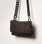 Tokyo Clutch A bag with a clean silhouette and a croc texture developed in our studio, creating a precise balance between softness and defined character. The folded magnetic closure together with the chain detail adds a modern, refined look.