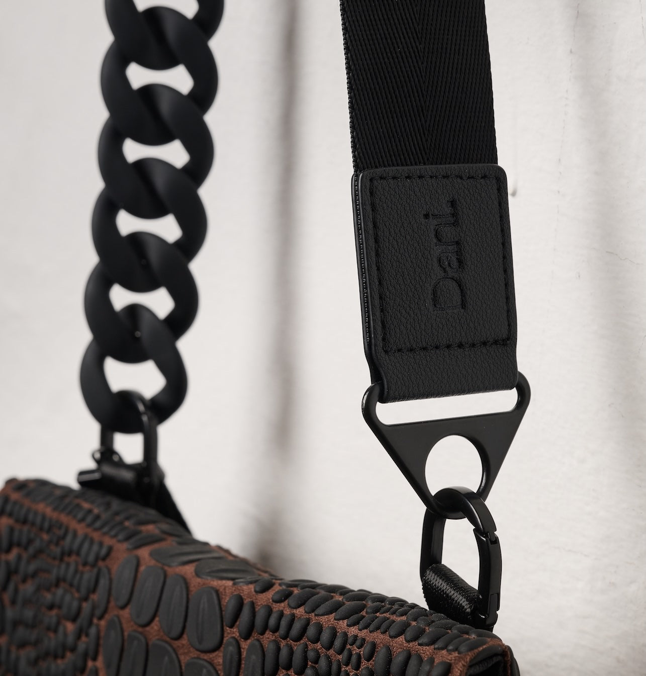 Both the strap and the chain are removable, allowing the style to adapt to different looks and occasions.