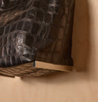 The leather’s texture was developed as a contemporary interpretation of one of Daniella’s most iconic archive leathers, first introduced two decades ago – a creative variation on croco, embossed on soft Italian sheepskin with a geometric pattern, wax finish, and the distinct individuality of handcrafted leather.